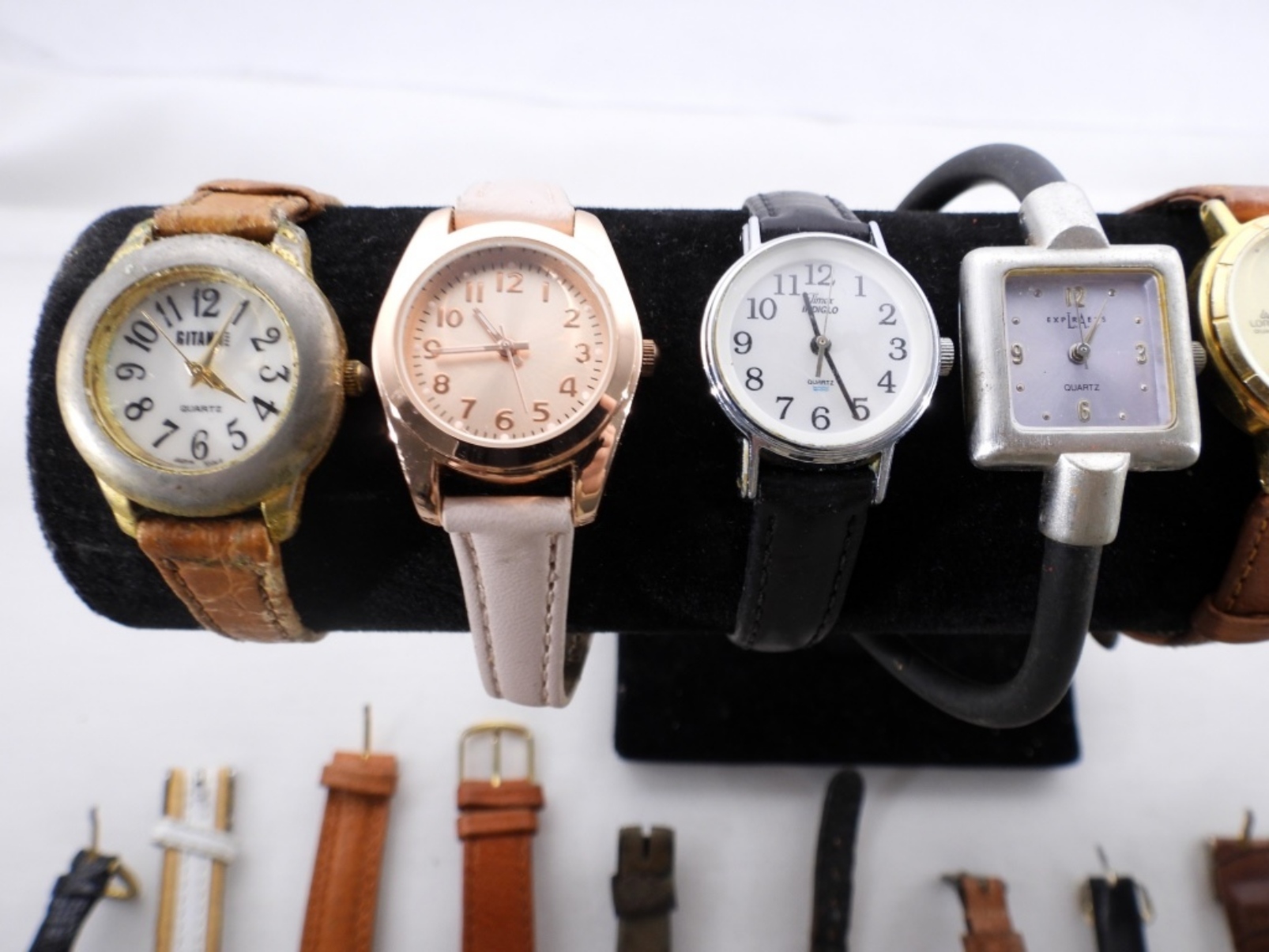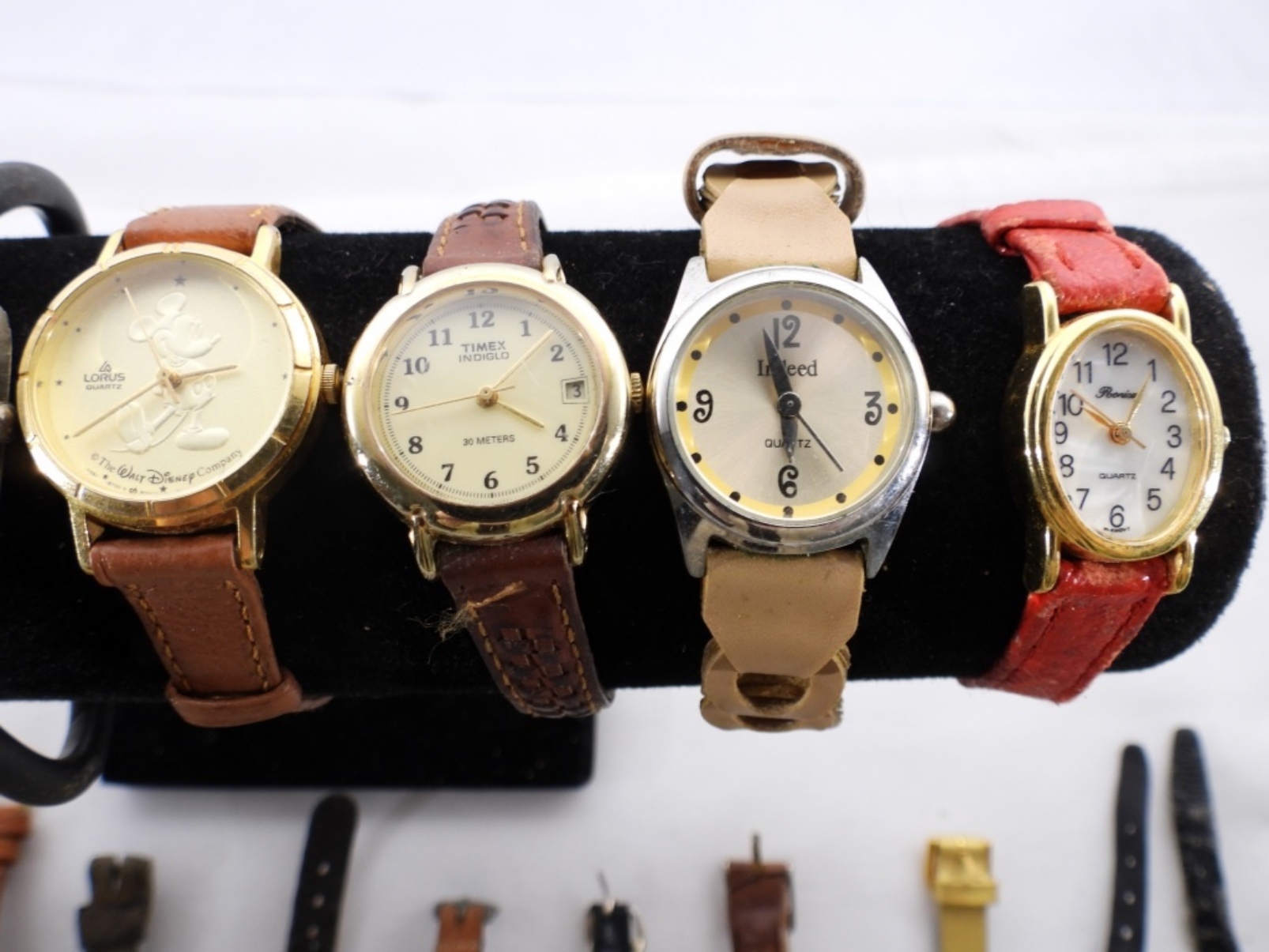 LARGE LOT OF 20 SKINNY COLORFUL WRISTBAND LADIES WATCHES. ALL WATCHES ARE UNTESTED/BRANDS UNVERIFIED. SOME BRANDS IN LOT INCLUDE: MANSON, LORUS, TIMEX, AND MORE!