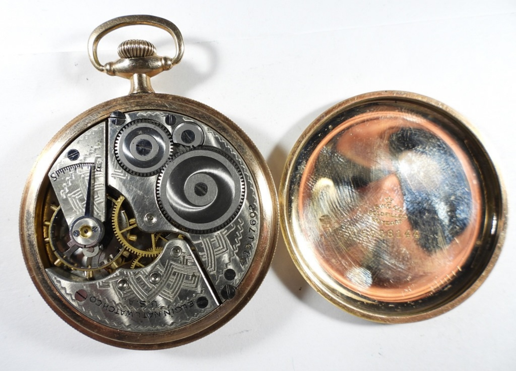STUNNING 1921 ELGIN POCKET WATCH- THIS PIECE IS PERFECT FOR ANY COLLECTOR- CURRENTLY WINDS UNSURE IF IT KEEPS TIME- ROSE GOLD TONE. THE GRADE ON THIS WATCH IS – 291 AND THE MODEL OF THIS WATCH IS #7. NOT TESTED AS TO
