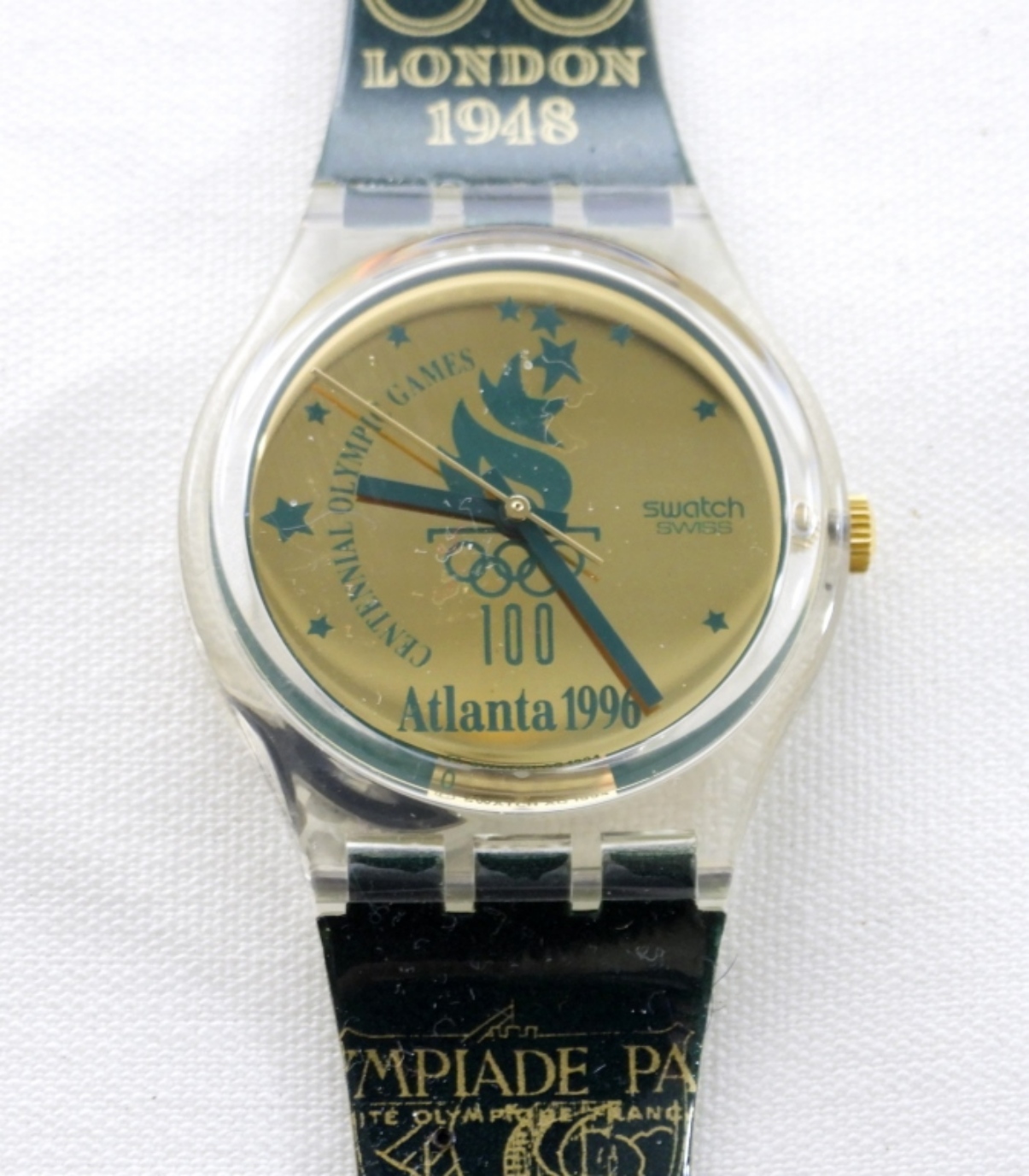 ATLANTA, NEW IN ORIGINAL PACKAGING, 1996 OLYMPIC SWATCH WATCH, GREAT CONDITION. WATCH IS NOT TESTED MEANING IT COULD NEED REPAIR OR PARTS TO WORK.