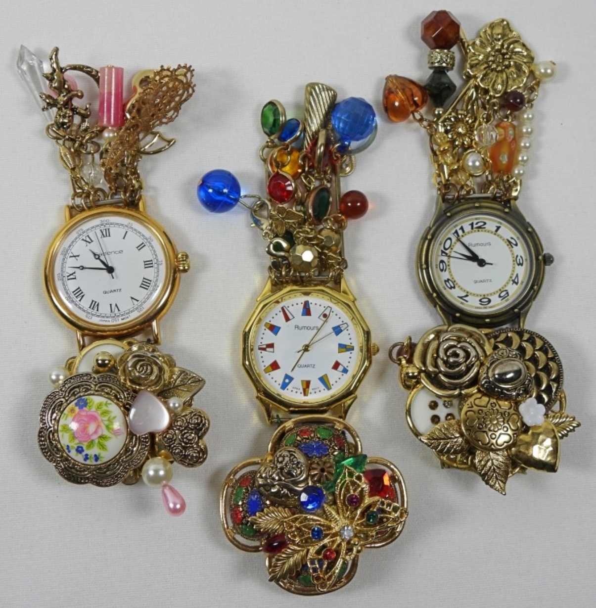 5 ASSORTED PRETTY WATCH BROOCHES, UNIQUE STYLES AND DESIGNS. WATCHES ARE UNTESTED/BRANDS UNVERIFIED. MAY NEED PARTS OR REPAIR TO WORK.