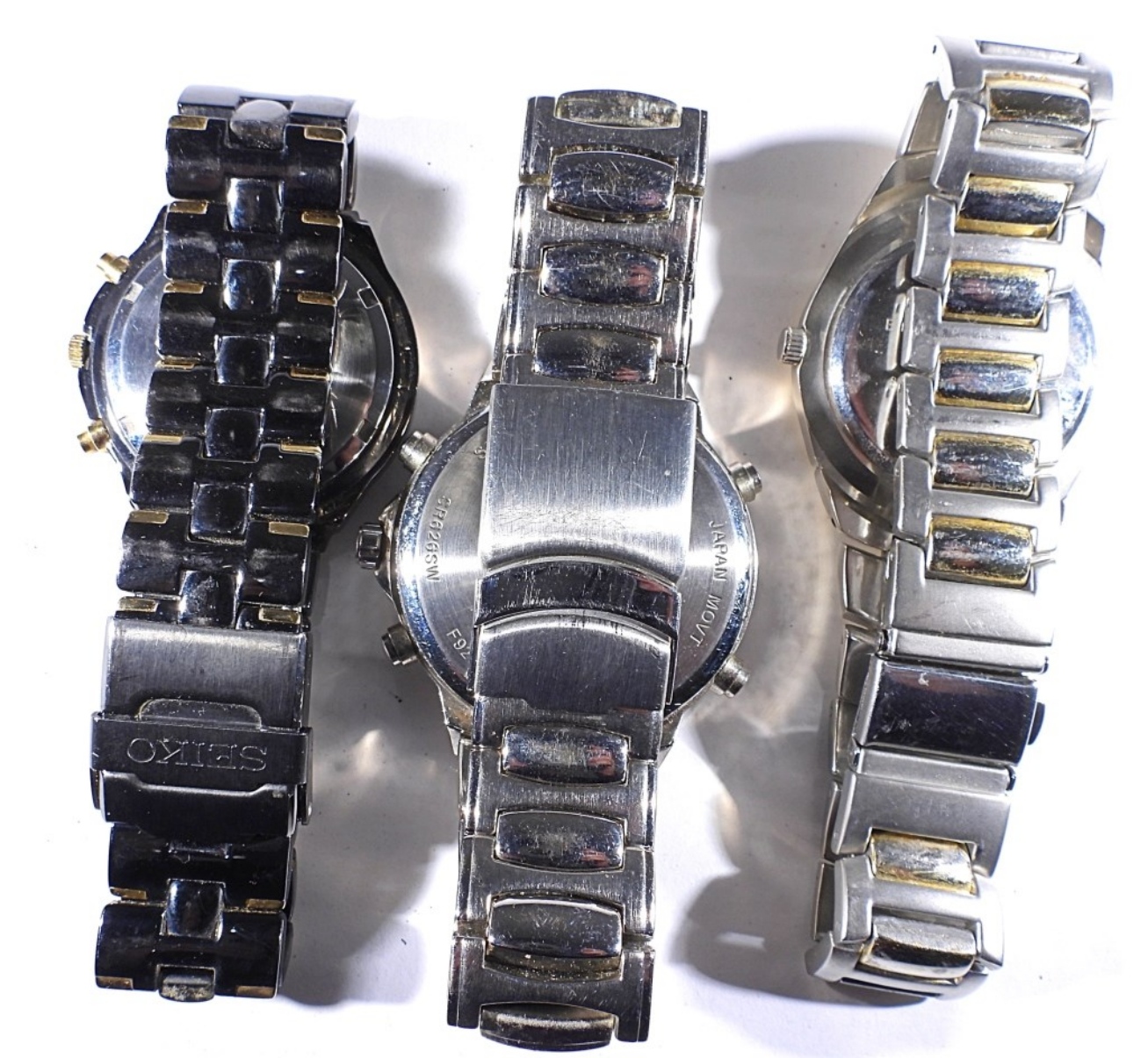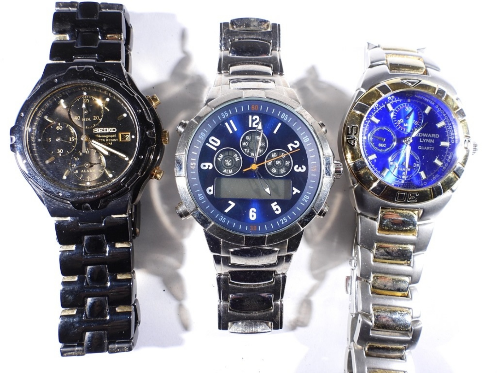 SEIKO CHRONOGRAPH 100m BLACK BAND, EDWARD LYNN QUARTZ & JAPAN MOVT QUARTZ DIGITAL – ALL UNTESTED NICE OVERALL CONDITION