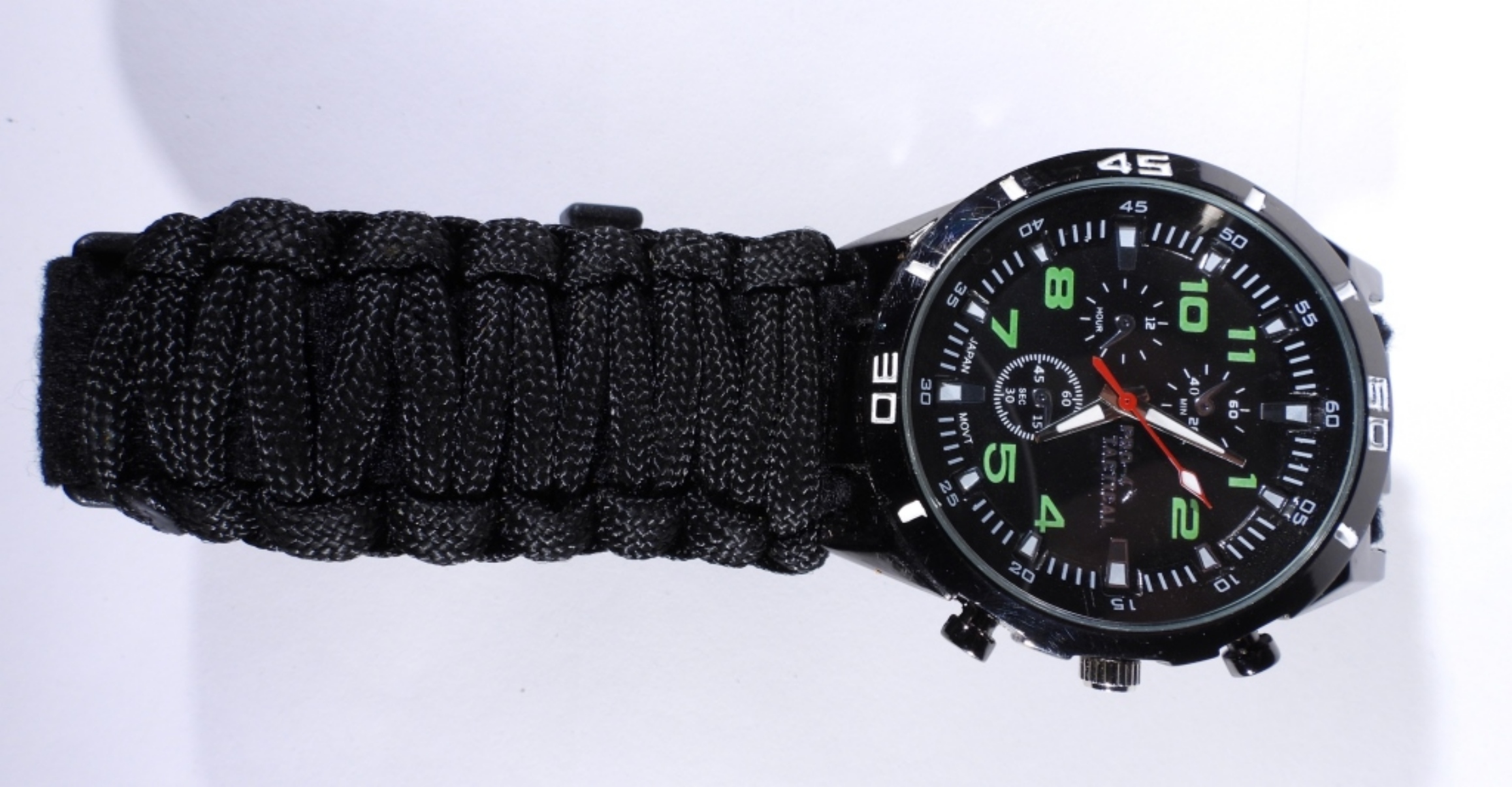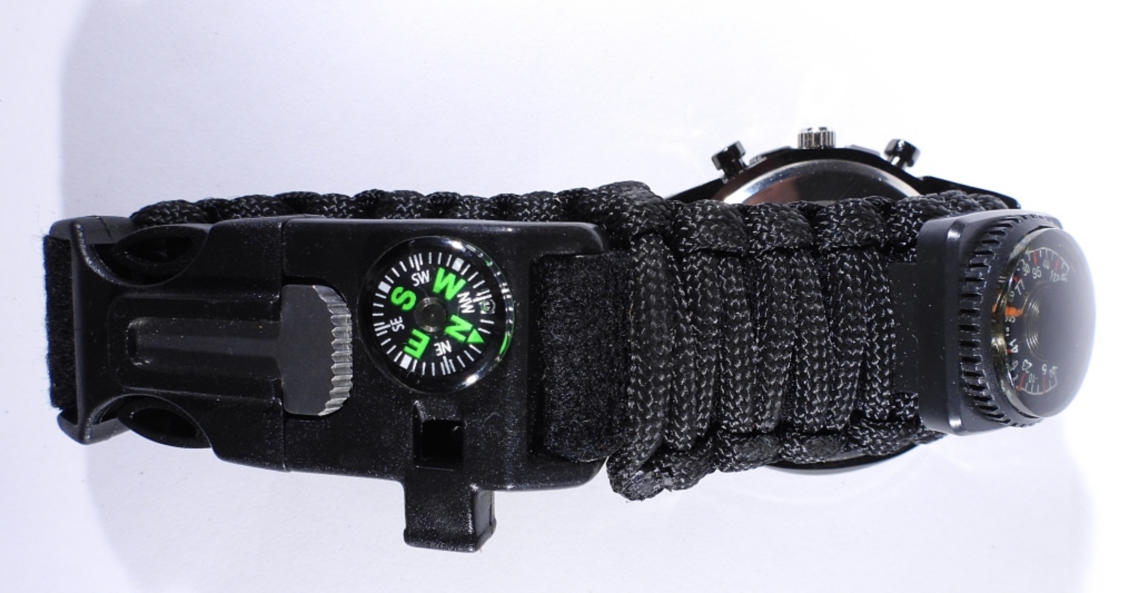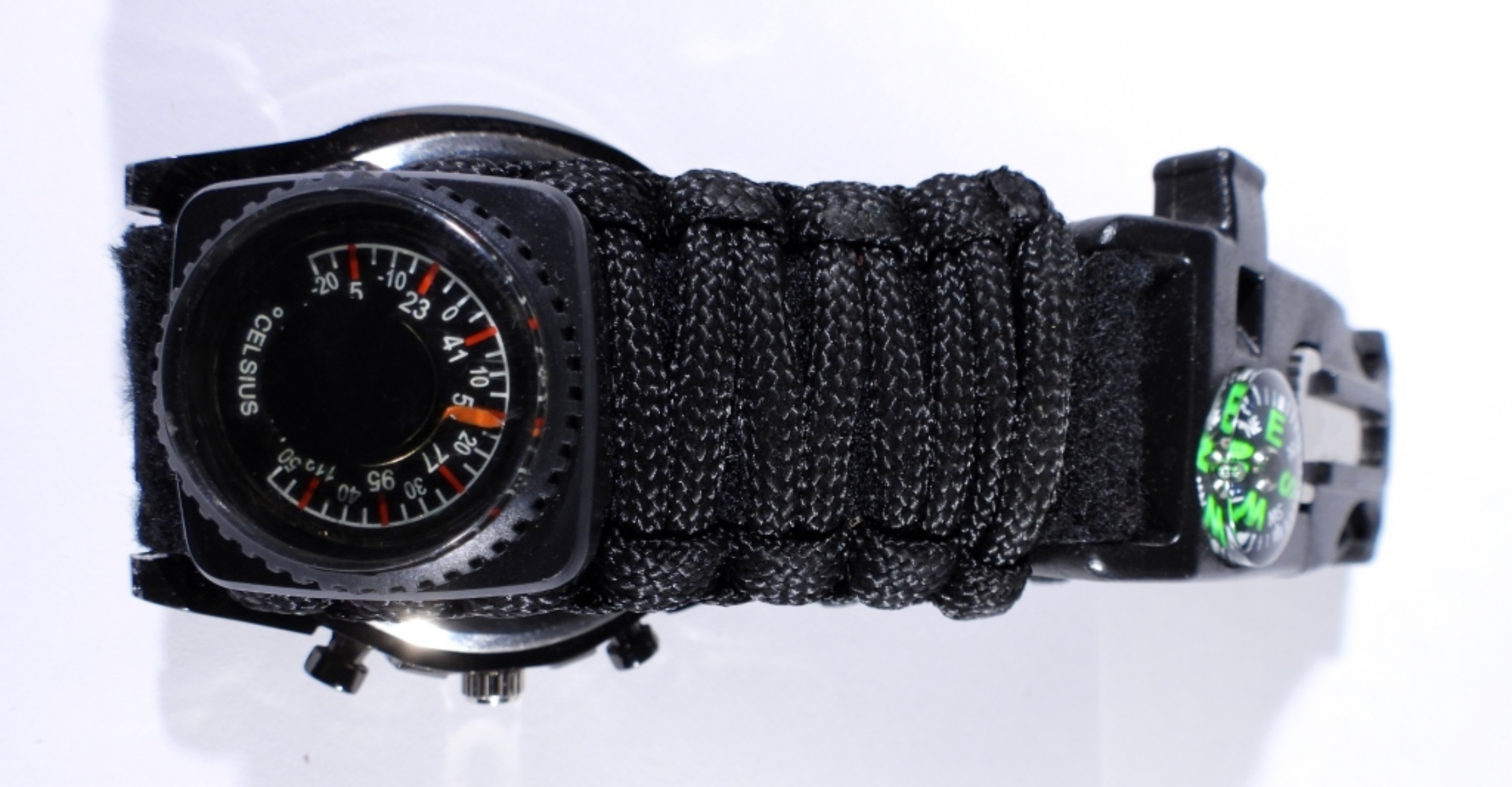 SURVIVAL WATCH with COMPASS, THERMOMETER, CUTTING TOOL, CORDED WRIST BAND – NICE CONDITION – UNTESTED