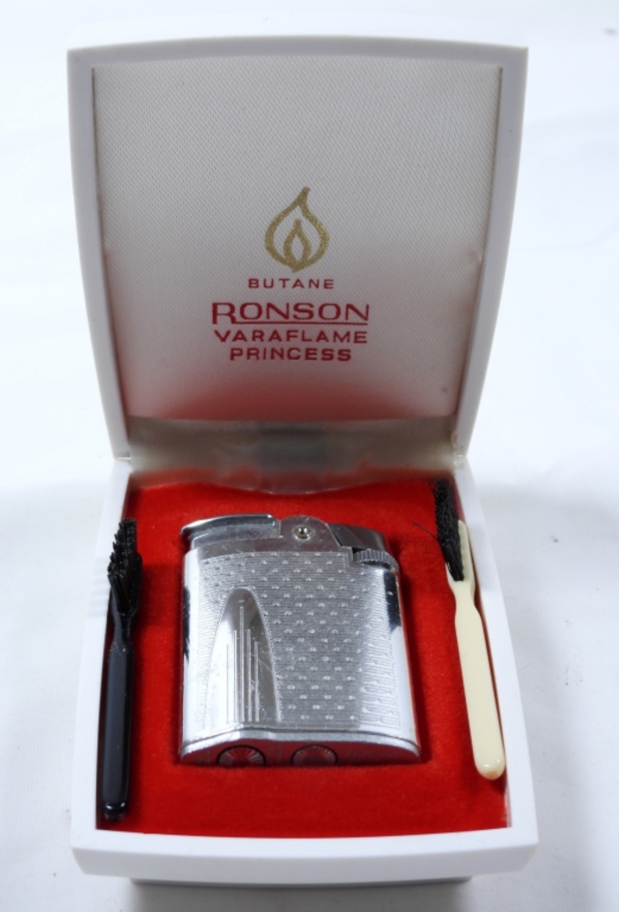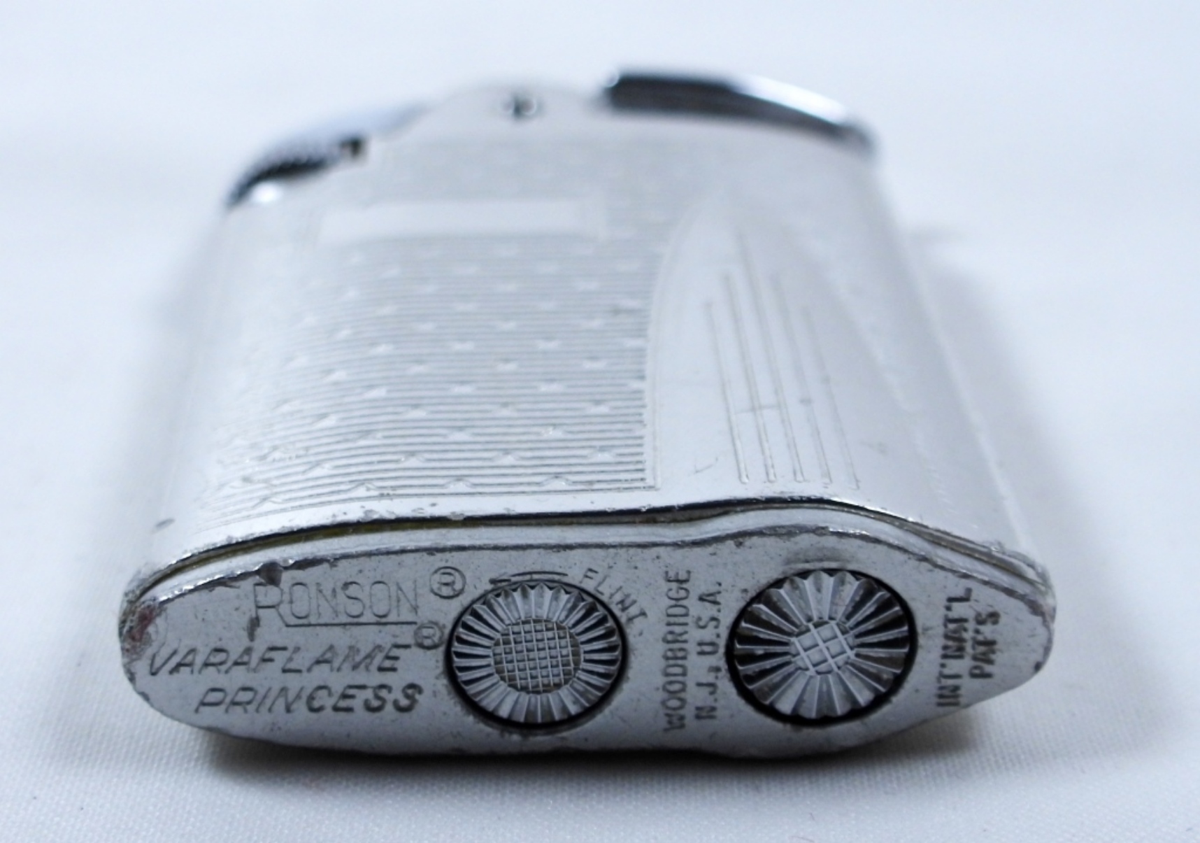 RONSON VARAFLAME PRINCESS- BUTANE- SILVER TONE LIGHTER- IN GOOD CONDITION, DOES SHOW SOME WEAR, PREOWNED.FIRED.