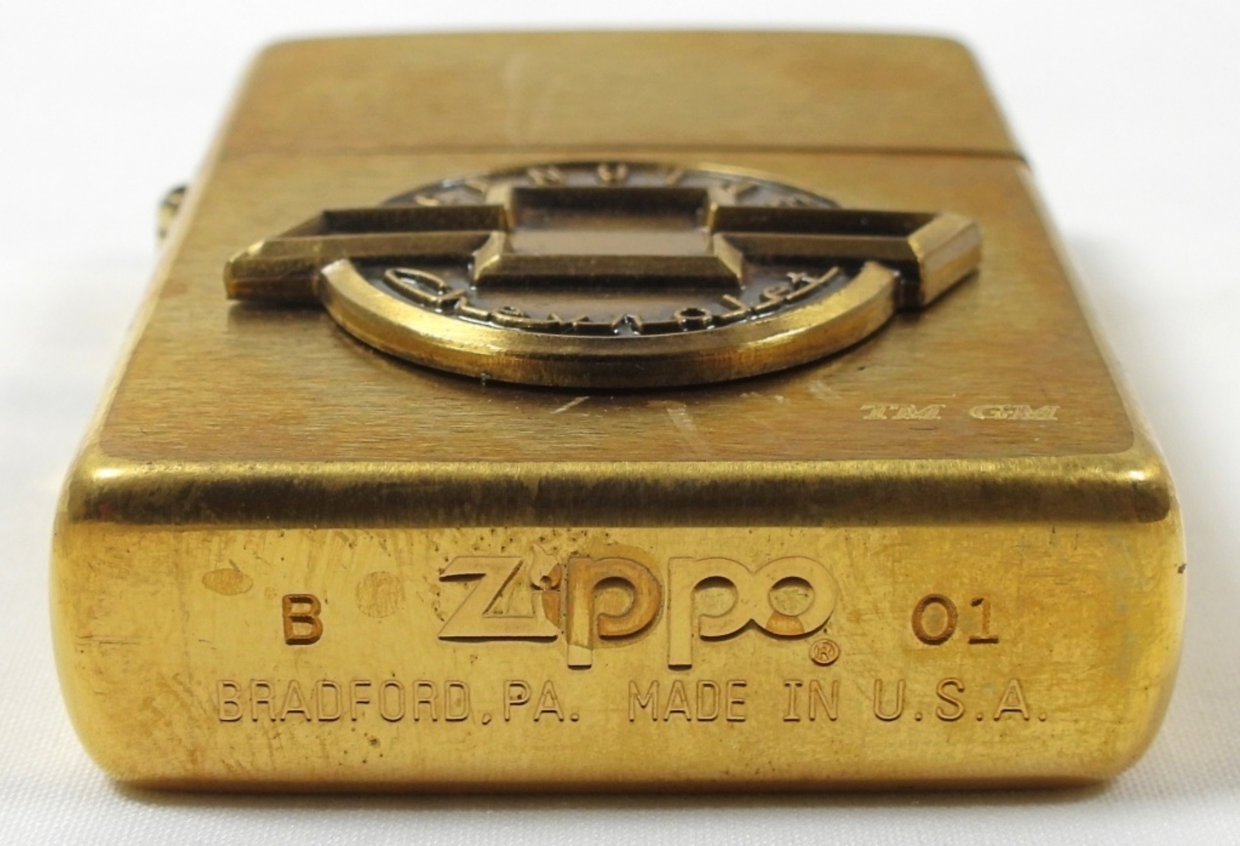 2001 CHEVY OVAL EMBLEM SEALED ZIPPO IN TIN, DAMAGE ON ZIPPO TIN BUT NOT ZIPPO ITSELF