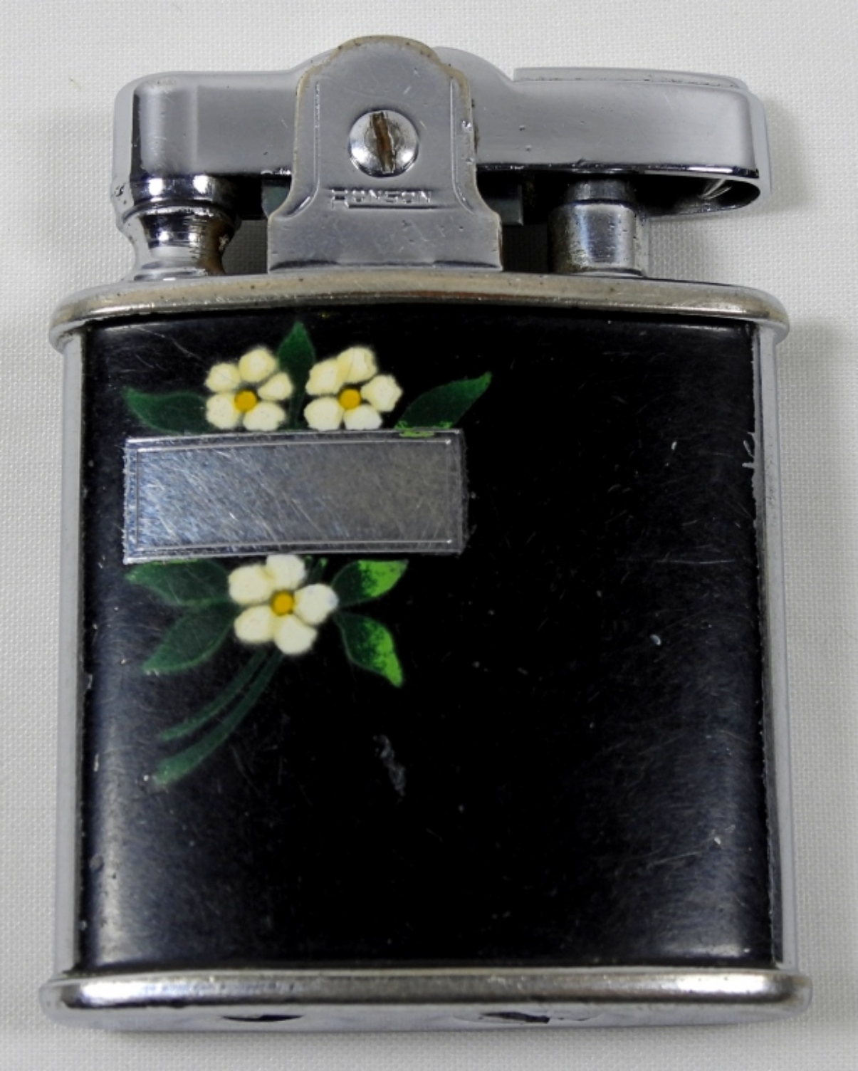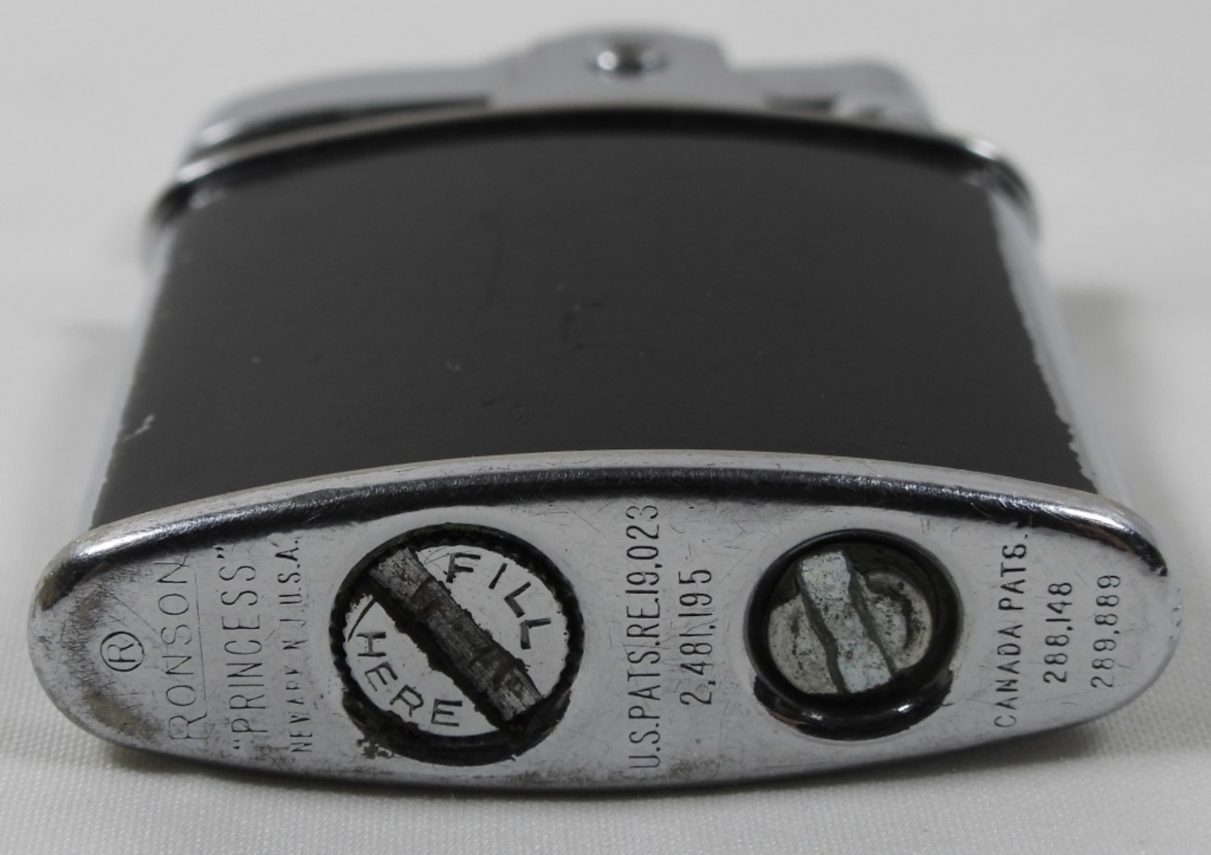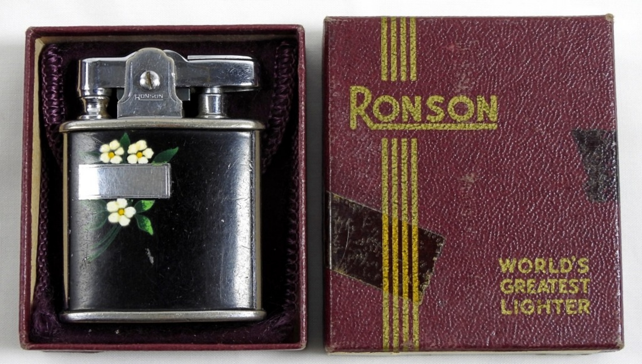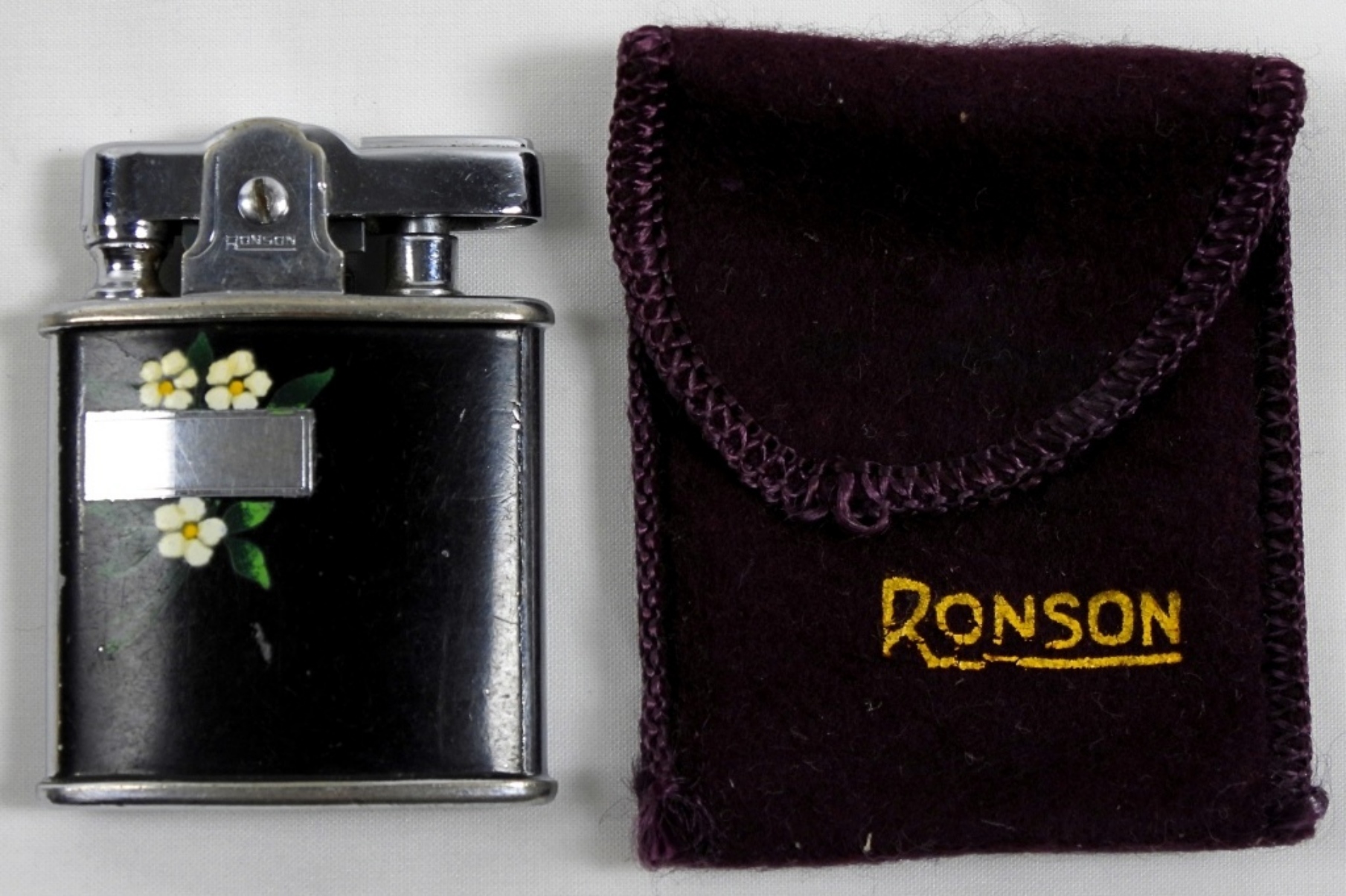VINTAGE BLACK MATTE RONSON PRINCESS LIGHTER WITH CASE IN BOX.