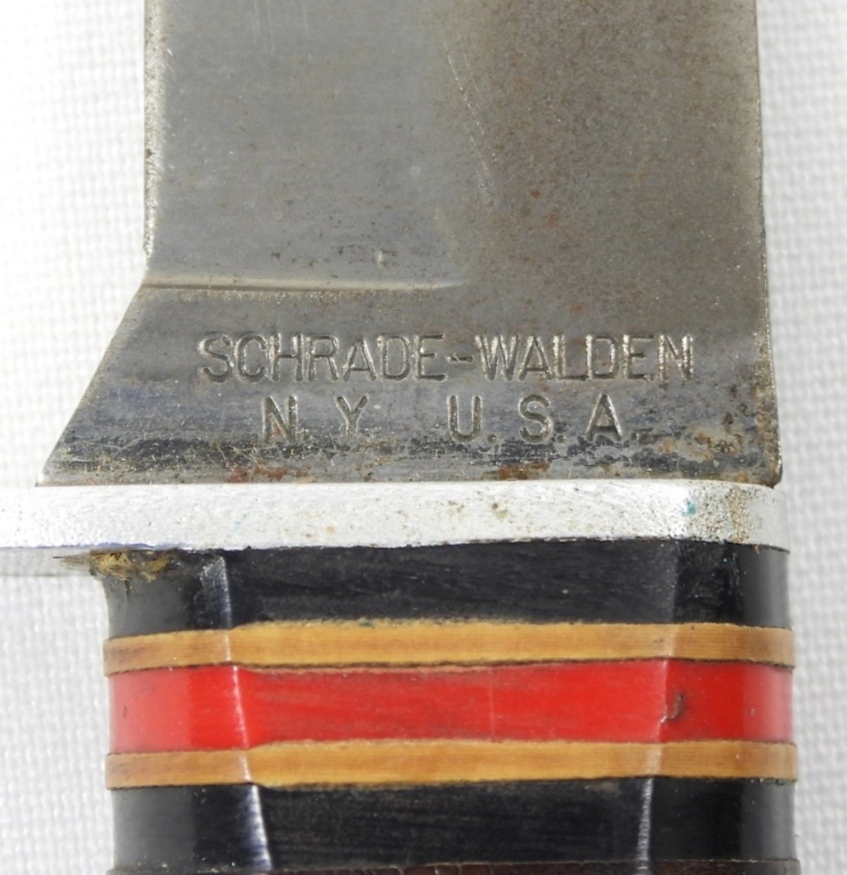 VINTAGE SCHRADE WALDEN 147 FIXED BLADE KNIFE IN LEATHER SHEATH