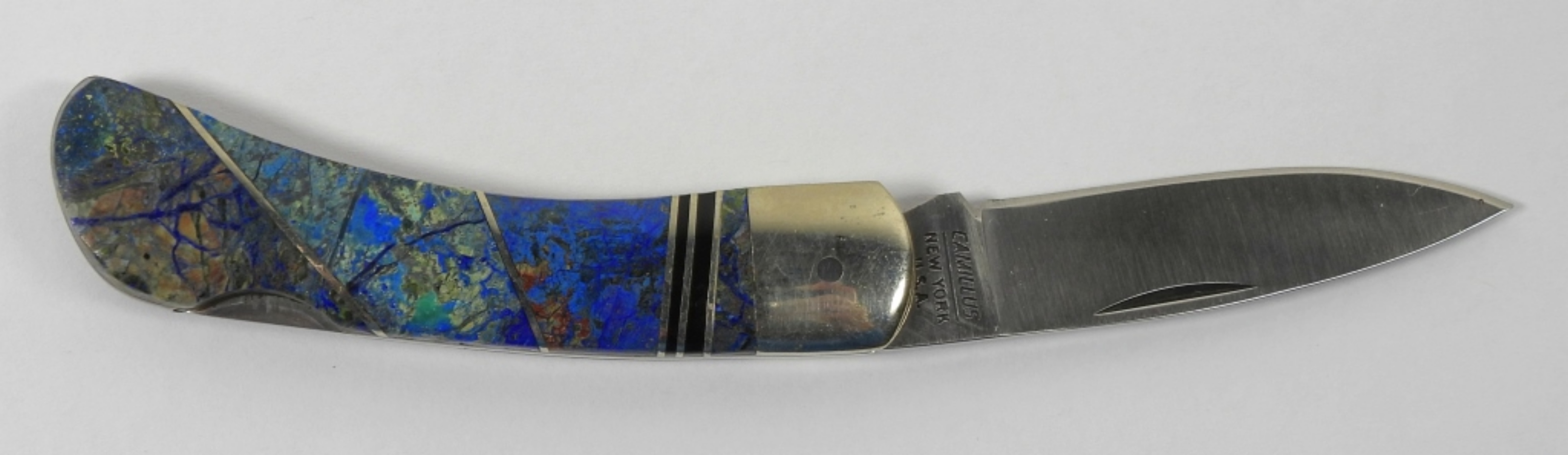 SANTA FE STONEWORKS LOCKBACK FOLDING POCKET KNIFE IN PRETTY FINISH. IN ORIGINAL BOX, APPEARS UNUSED, GREAT CONDITION