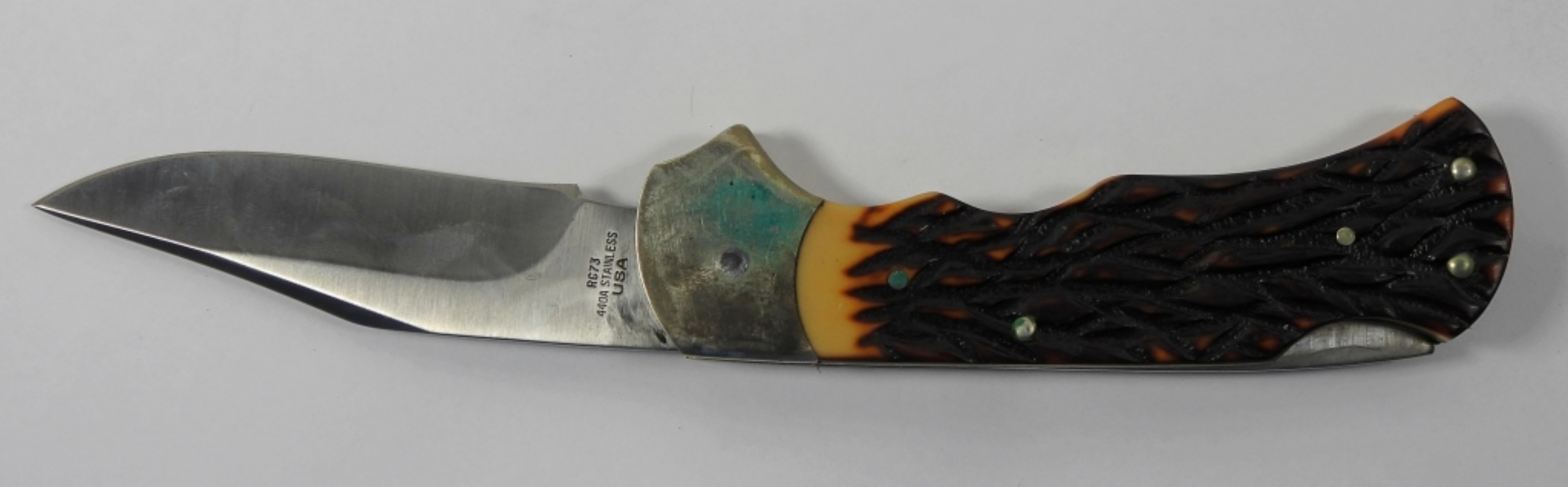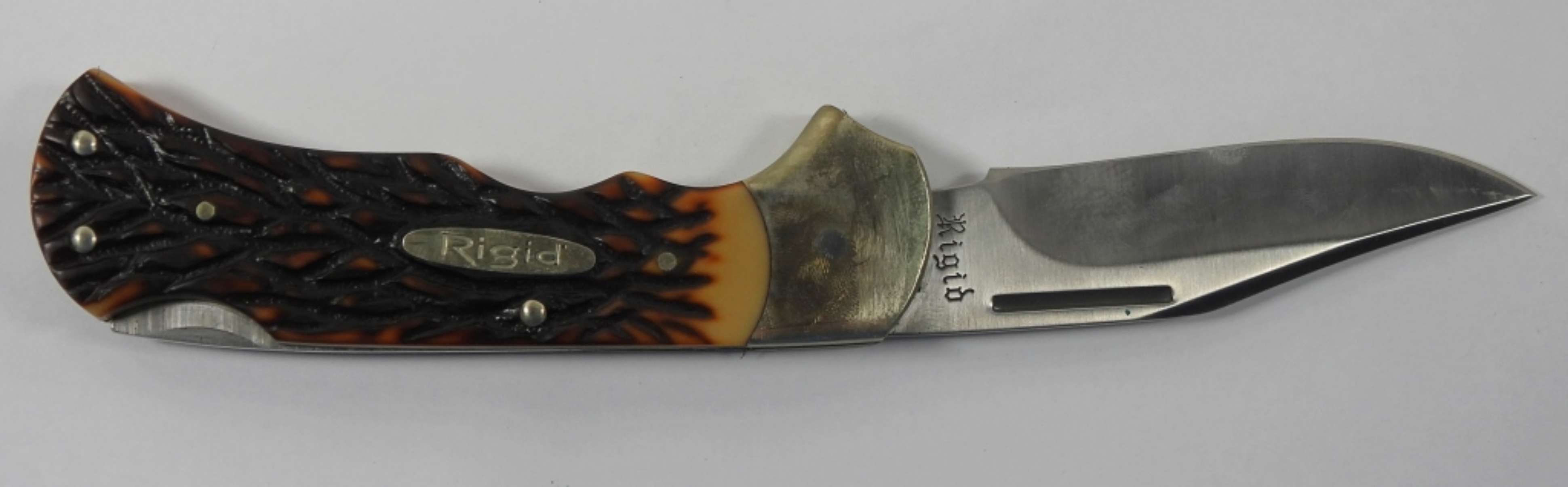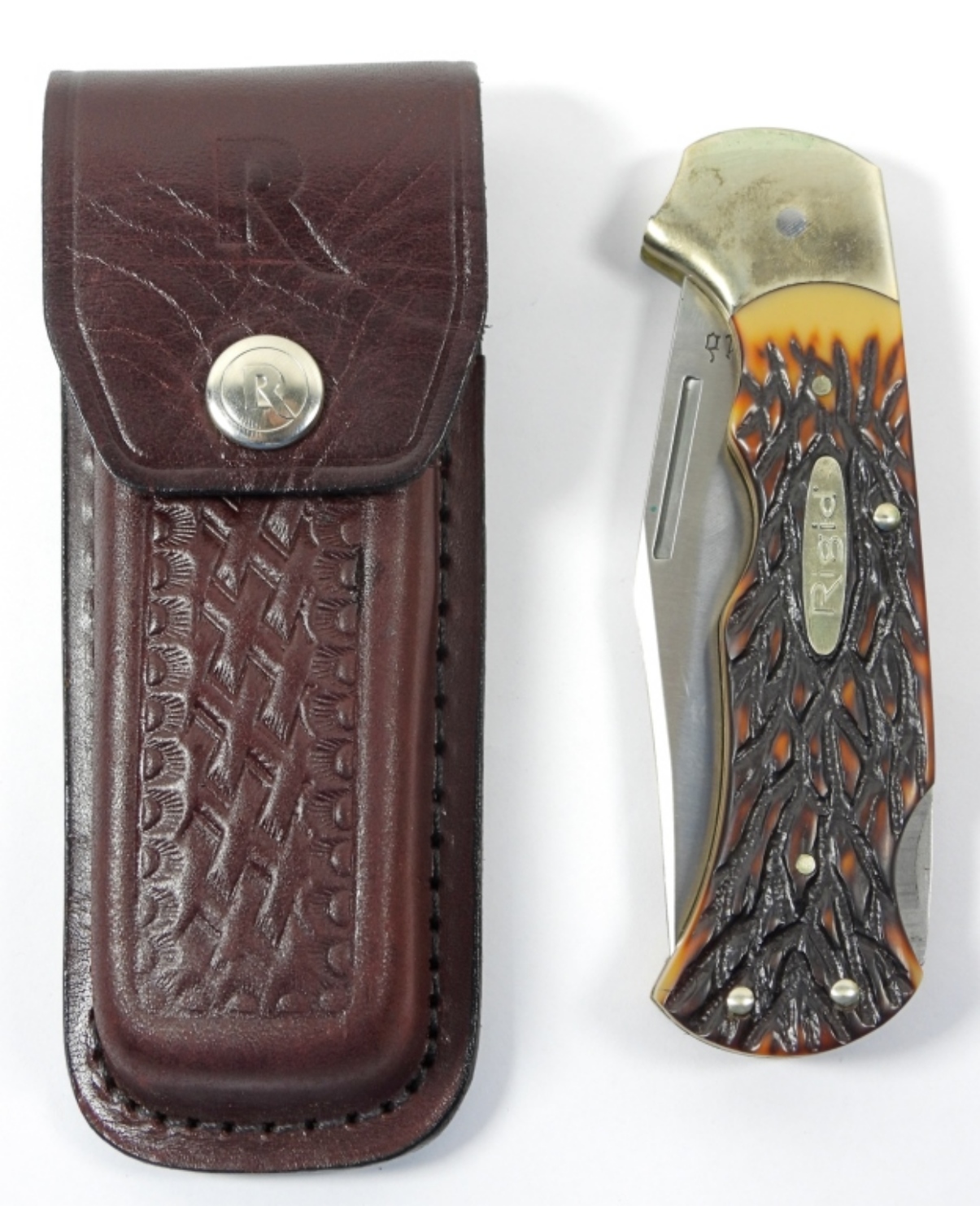 RIGID FOLDING POCKET KNIFE 440A LOCKBACK IN LEATHER SHEATH. GREAT CONDITION
