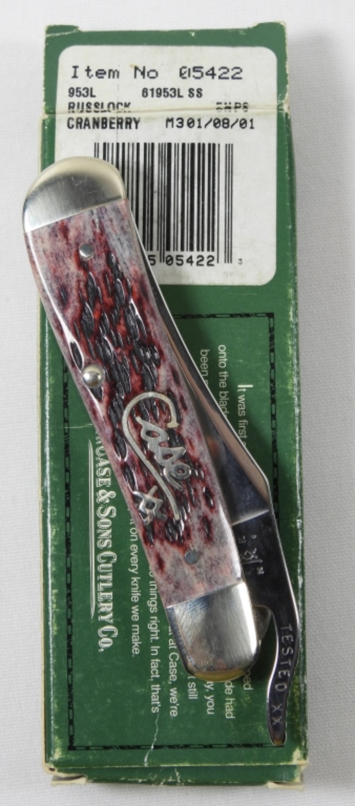 BEAUTIFUL, GREAT CONDITION. CASE XX 953L RUSSLOCK POCKET KNIFE IN CRANBERRY COLORWAY. IN ORIGINAL BOX.