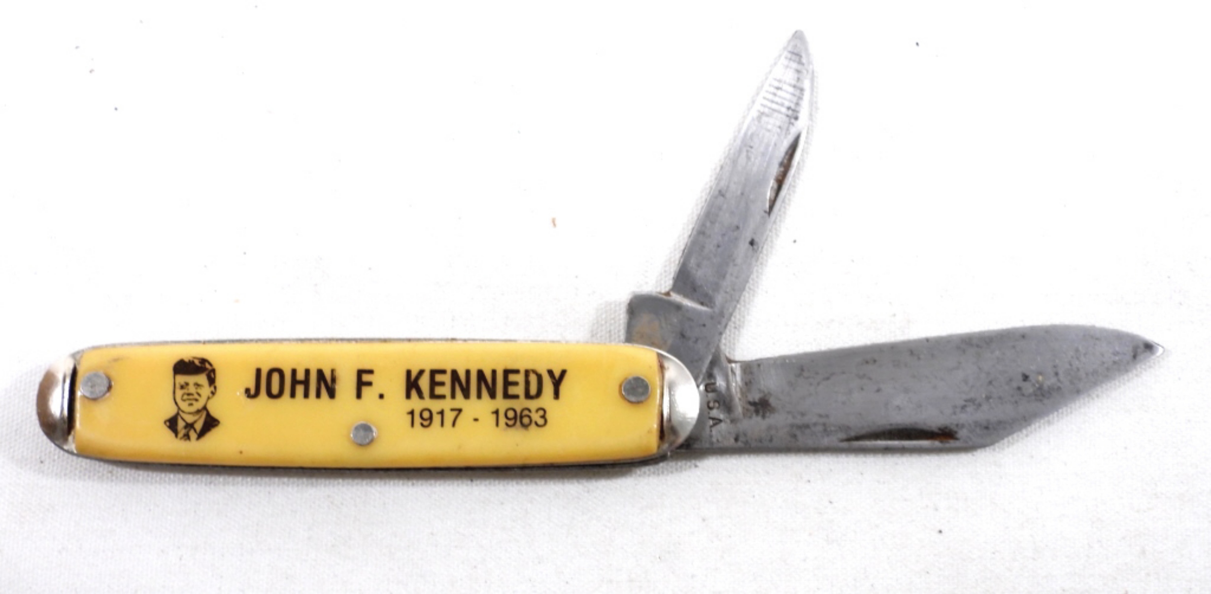 COMMEMORATIVE VINTAGE JOHN F KENNEDY POCKET KNIFE. 2 BLADE KNIFE.