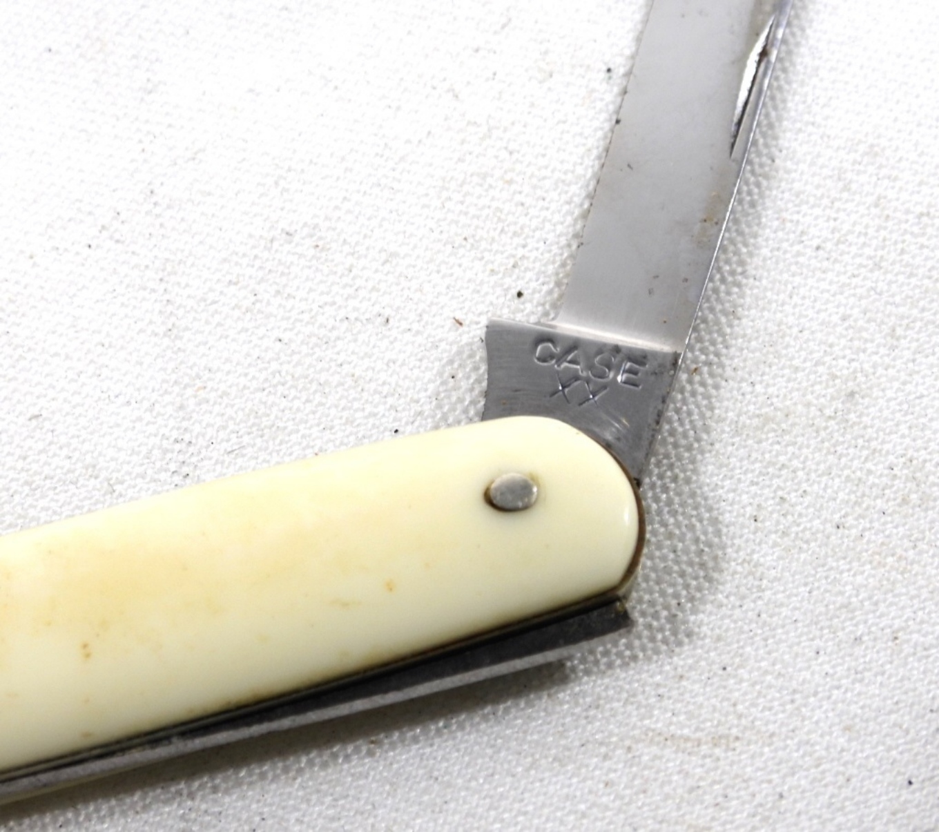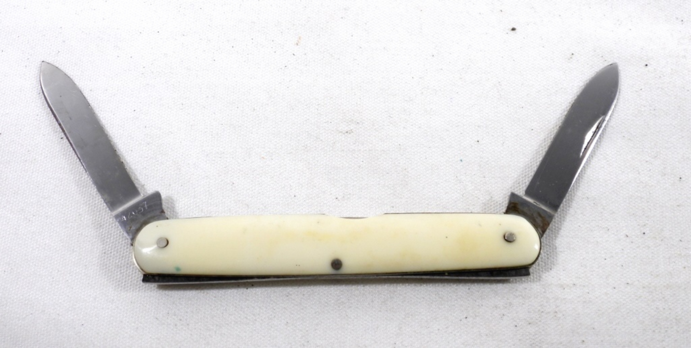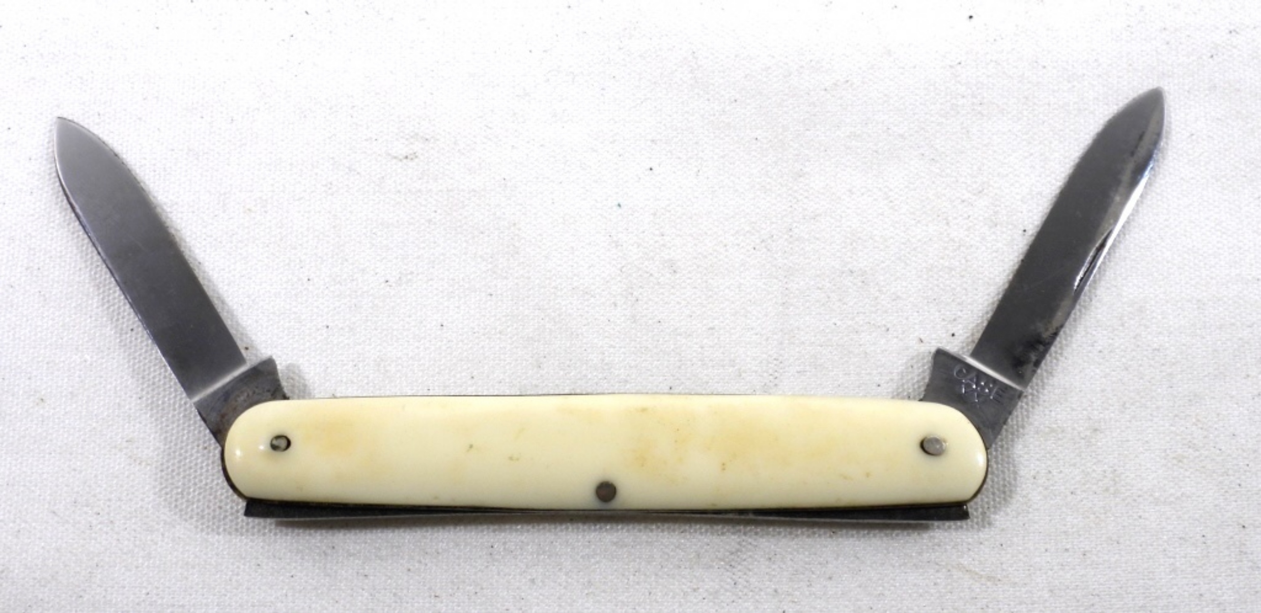 VINTAGE (WHITE HANDLE) CASE 2 BLADE POCKET KNIFE 42057.BLADES IN GOOD CONDITION. VERY MINOR RUSTING