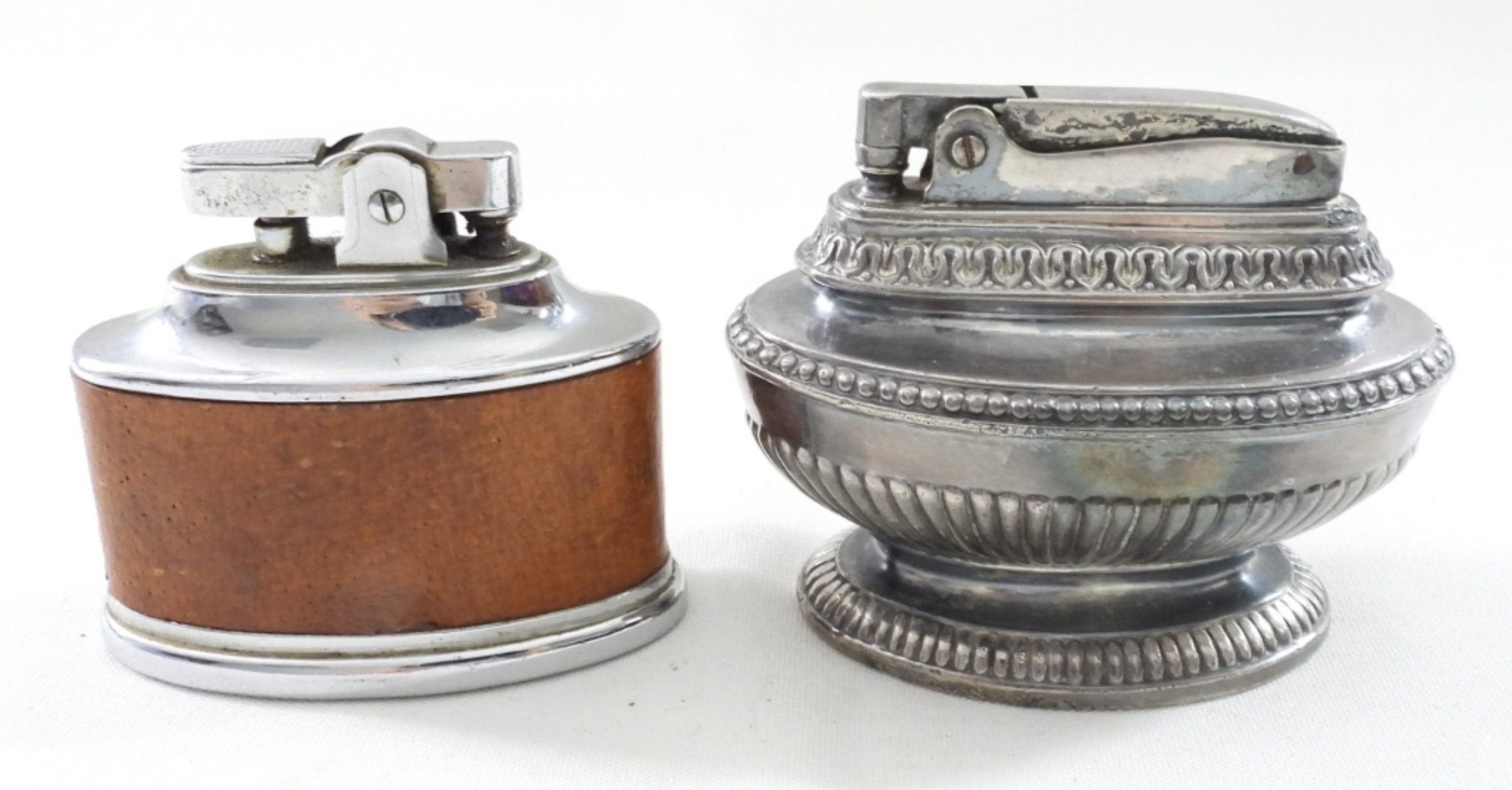 (2) TABLE LIGHTERS, RONSON & OTHER, RONSON QUEEN ANNE TABLE LIGHTER, BROWN & SILVER TABLE LIGHTER