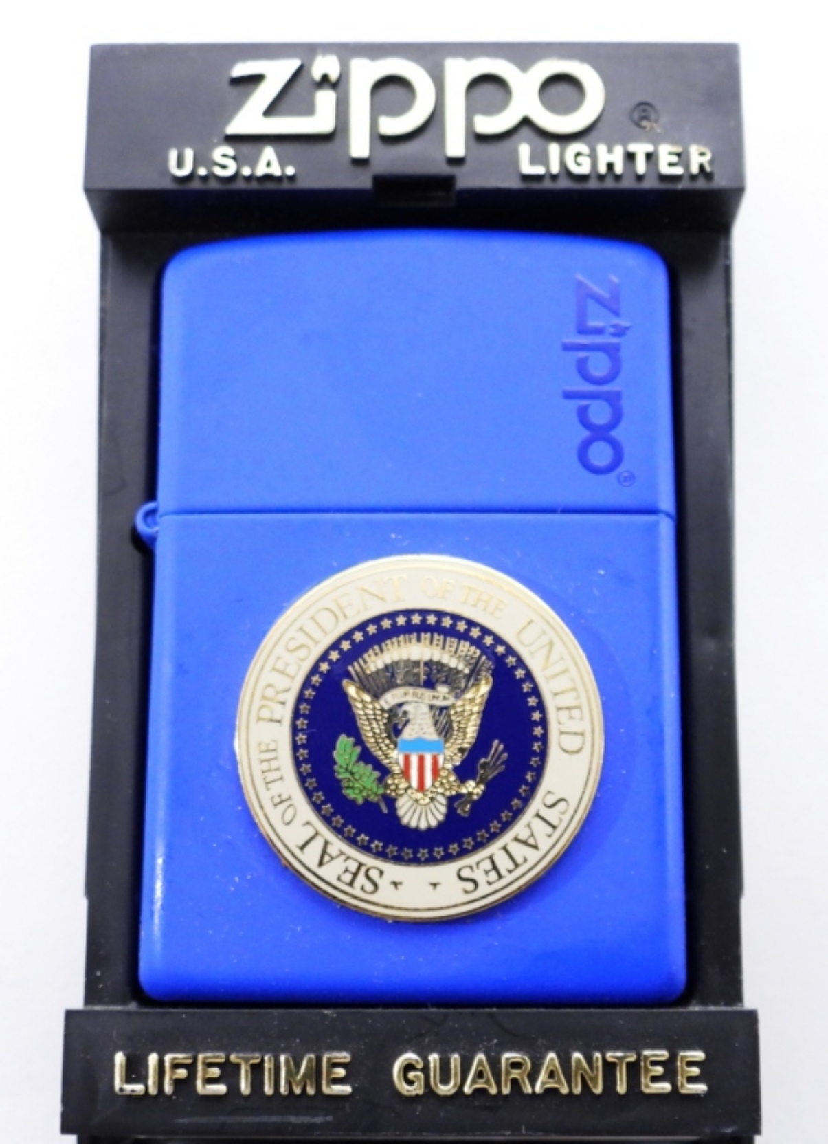 SEALED 2003 BLUE MATTE US PRESIDENT SEAL ZIPPO LIGHTER