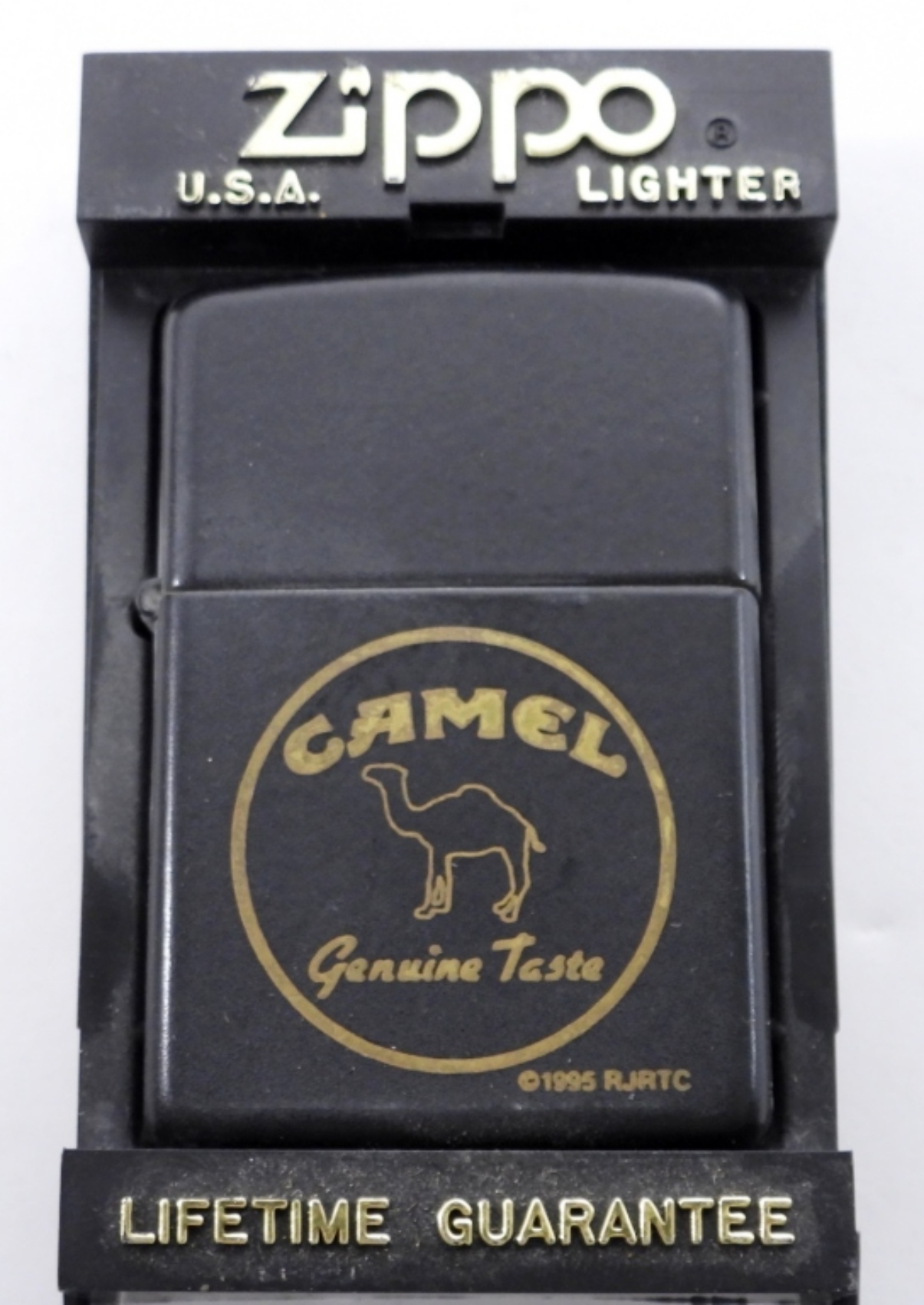 VINTAGE 1995 FIRED MATTE BLACK CAMEL GENUINE TASTE ZIPPO LIGHTER