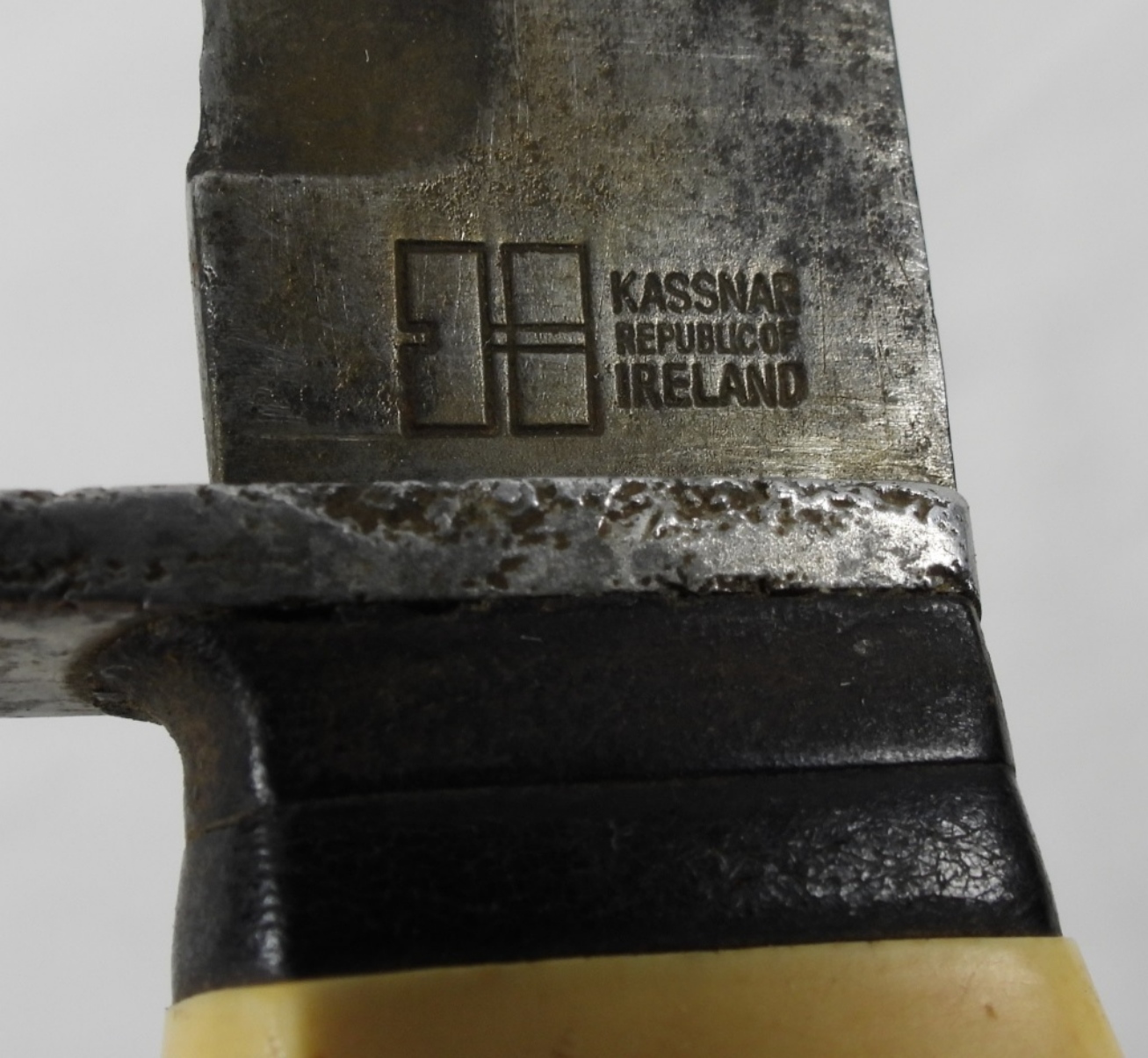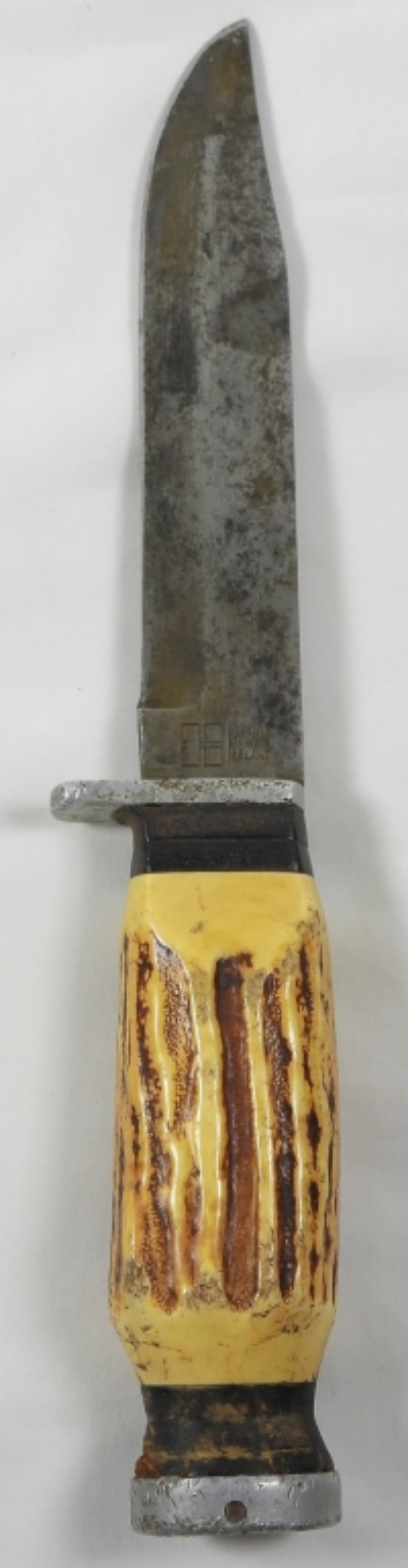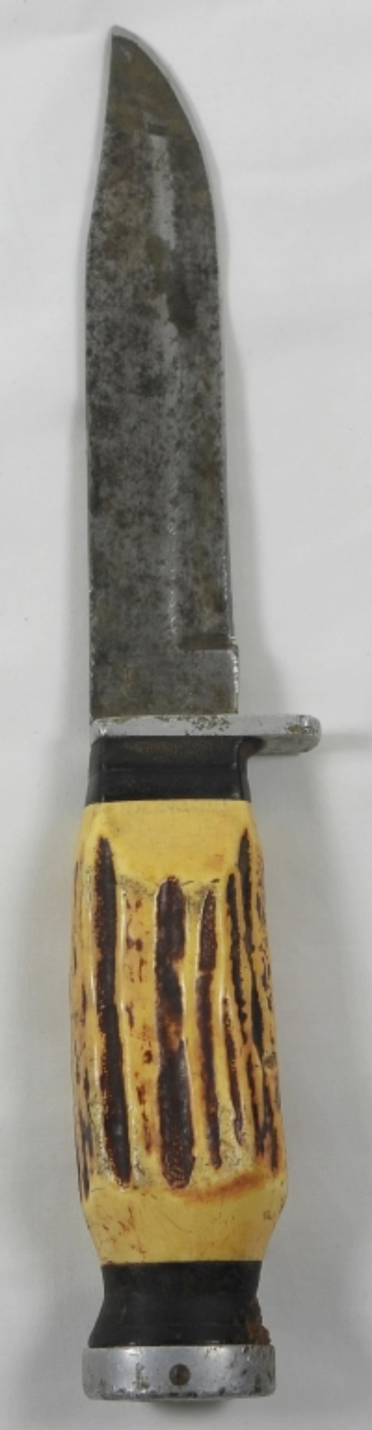 VINTAGE KASSNAR HUNTING KNIFE 5156 IN HOMEMADE LEATHER SHEATH, BONE HANDLE