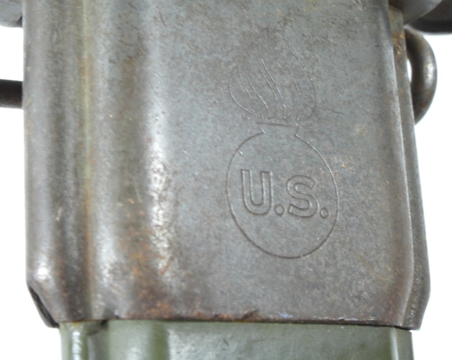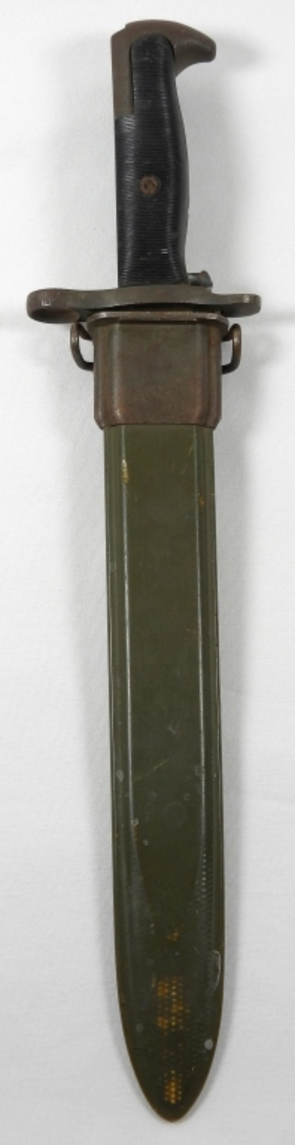 VINTAGE MARKED UC UOS USA BAYONET. WWII ERA, BAYONET 10″. IN SHEATH