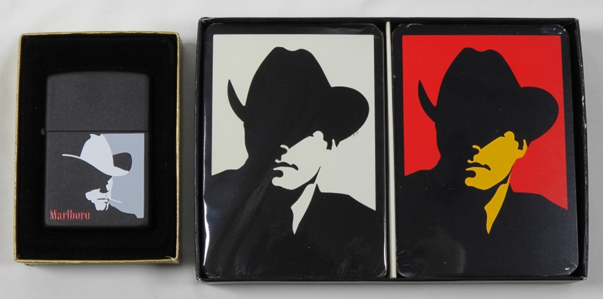 1993 MARLBORO BLACK MATTE SEALED ZIPPO LIGHTER IN BOX AND UNOPENED MARLBORO WILD WEST PLAYING CARDS