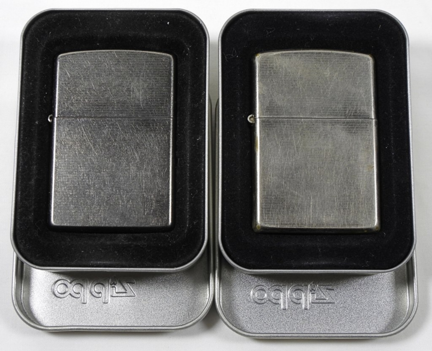 2006 SILVER BRUSHED UNFIRED ZIPPO LIGHTER IN TIN AND 2005 SEALED SILVER BRUSHED ZIPPO LIGHTER