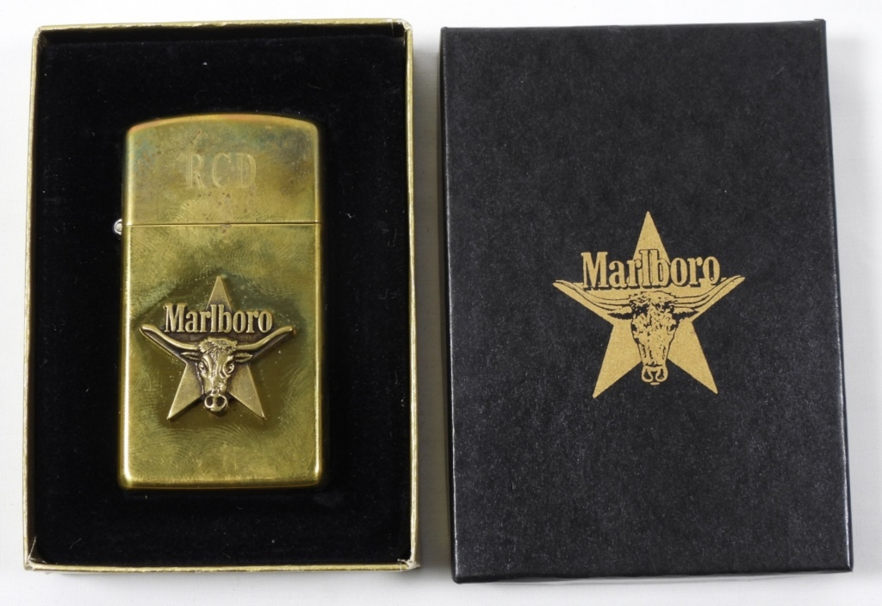 UNFIRED SLIM BRASS 1991 MARLBORO ZIPPO IN BOX