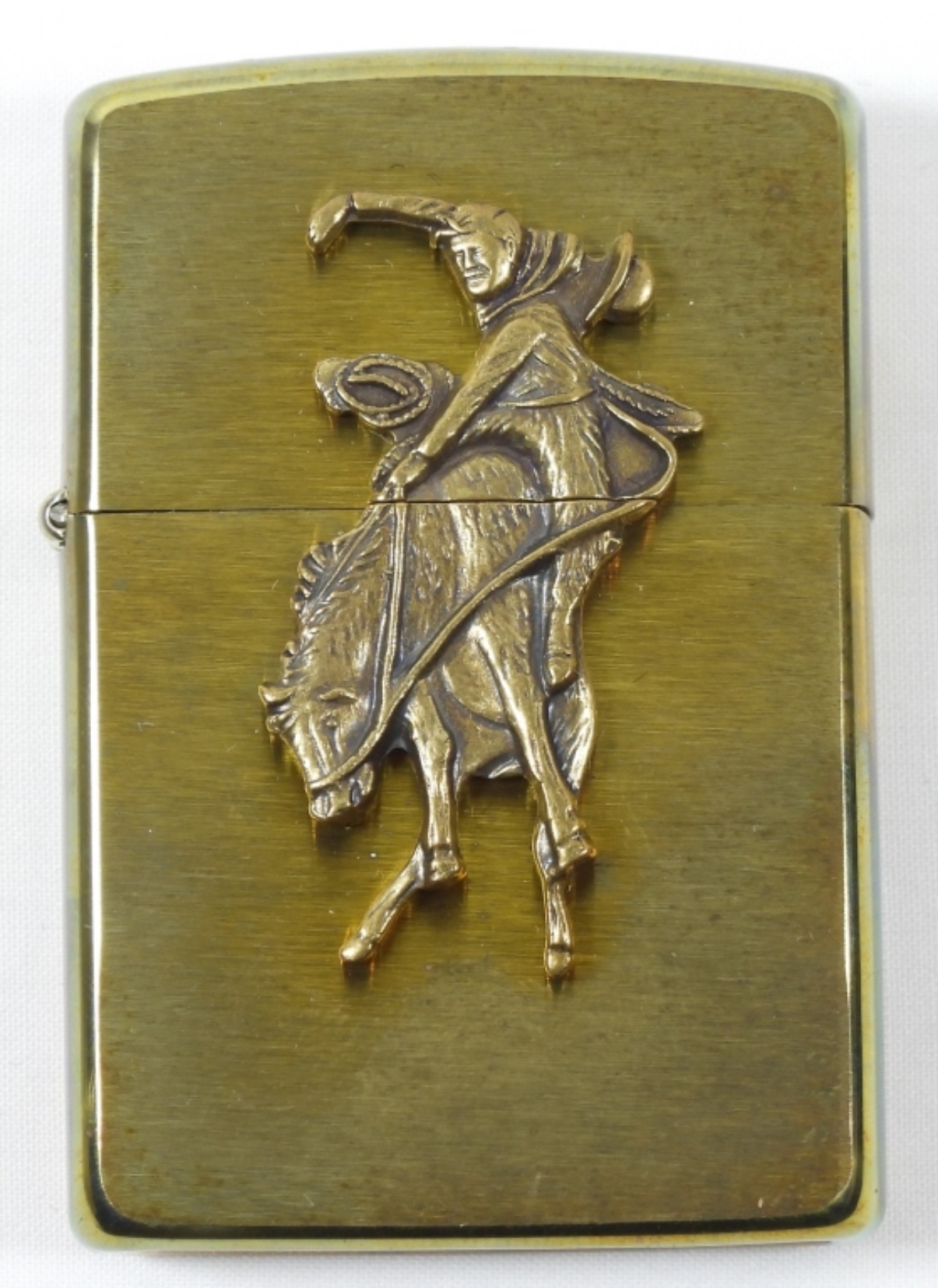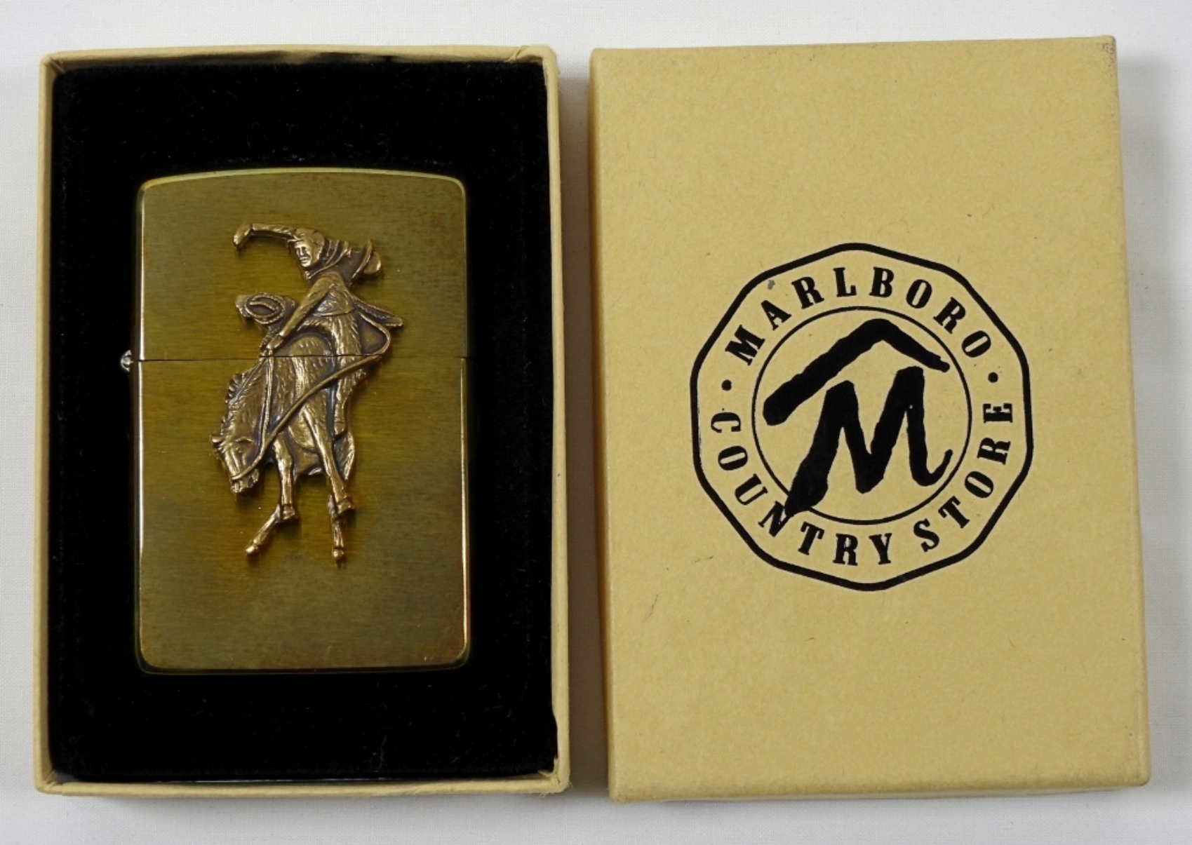 1995 BRASS SEALED MARLBORO WILD WEST BUCKING BRONCO ZIPPO IN BOX.