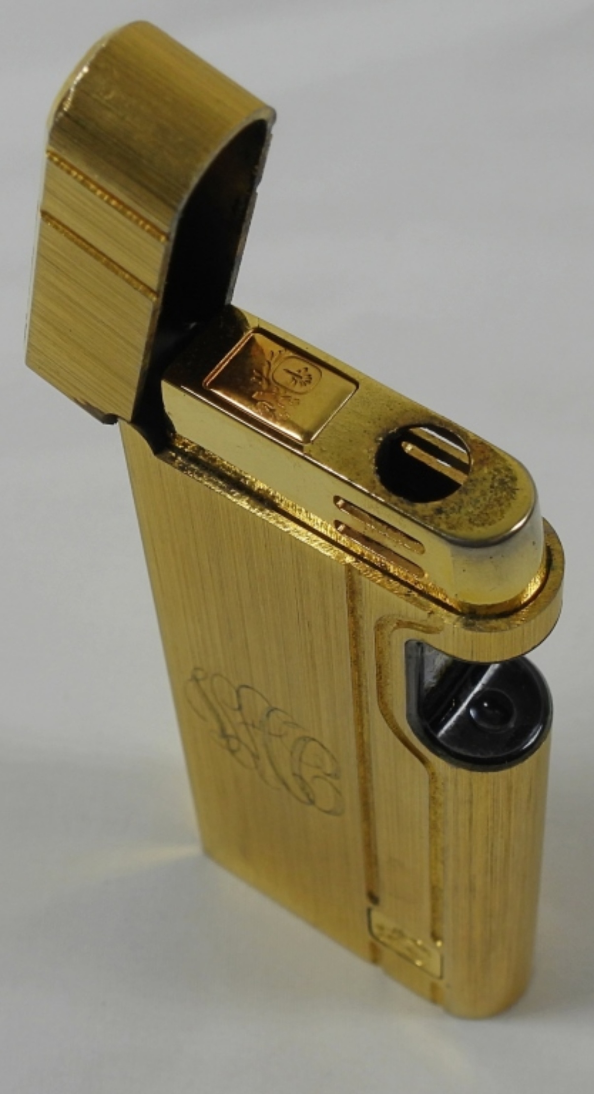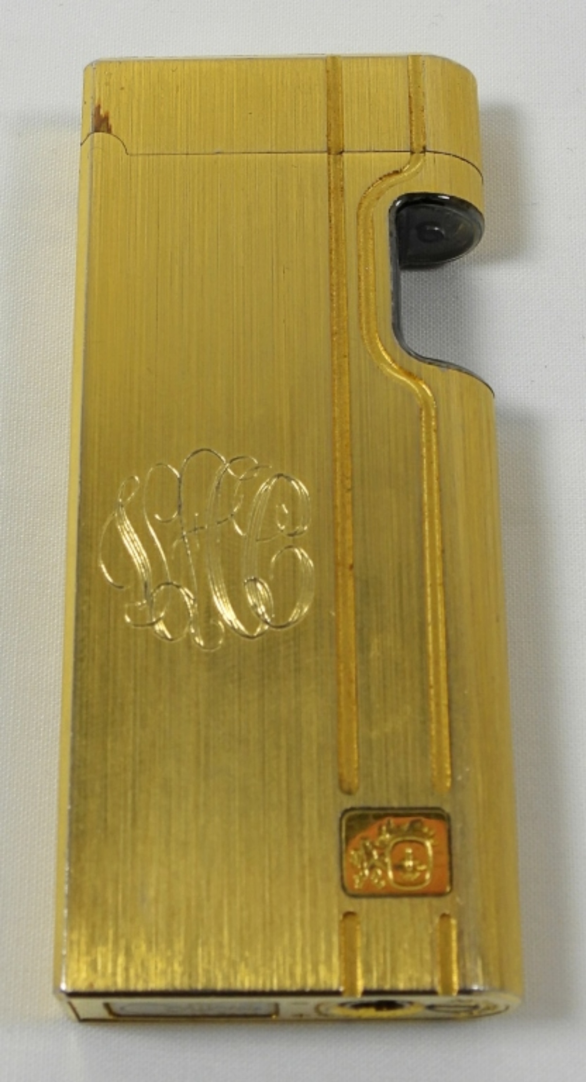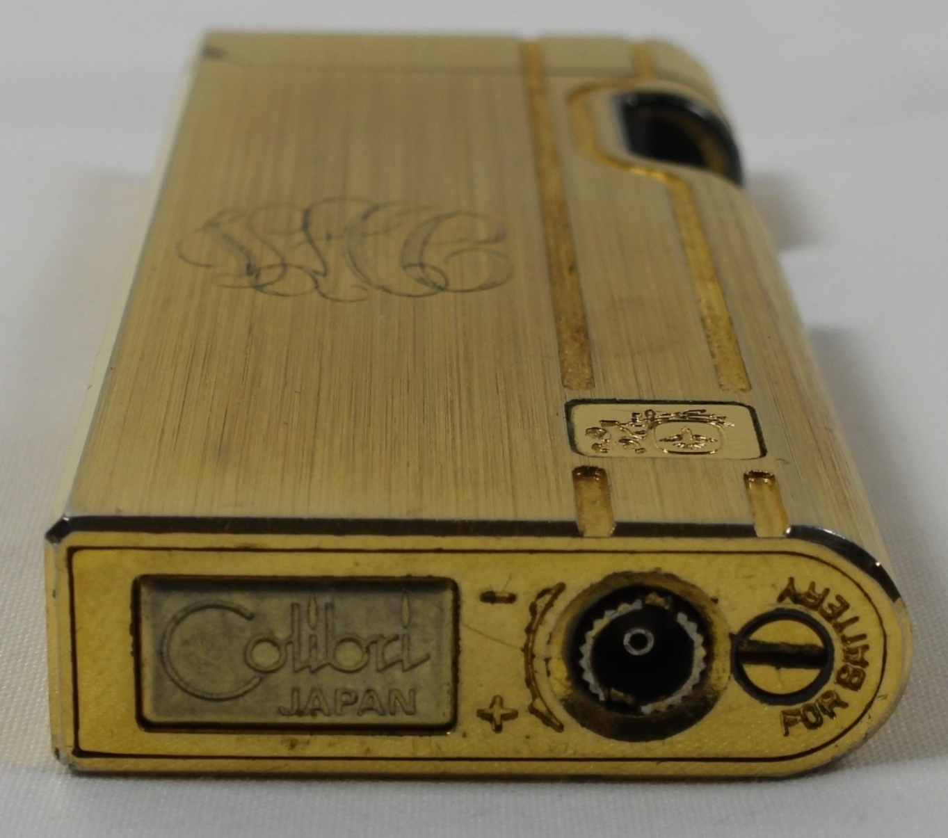 VINTAGE COLIBRI BEAM SENSOR LIGHTER IN ORIGINAL BOX WITH INSTRUCTIONS. GOLD TONE FINISHES, MONOGRAMMED ON ONE SIDE