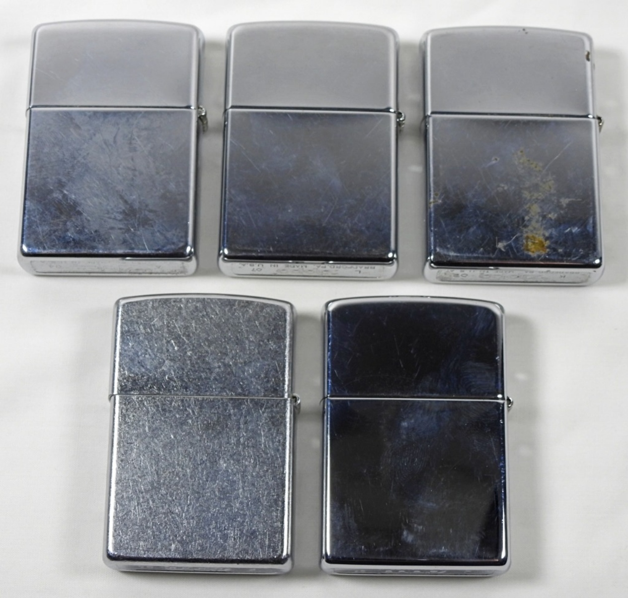 5 (ALL BEEN FIRED) SILVER CHROME FINISH ZIPPO LIGHTERS