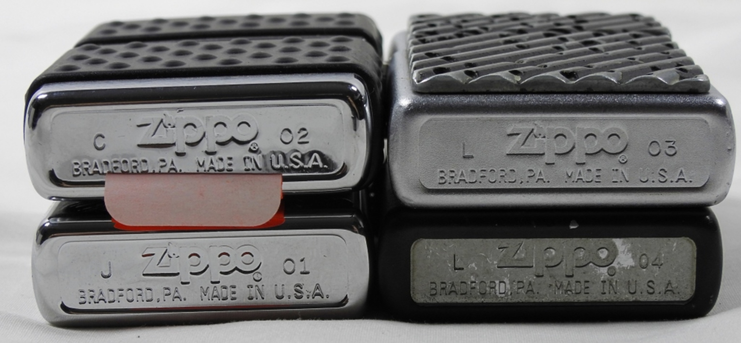 4 ASSORTED YEARS ZIPPOS. 2 ARE SEALED AND 2 HAVE BEEN FIRED (SEE PICTURES)