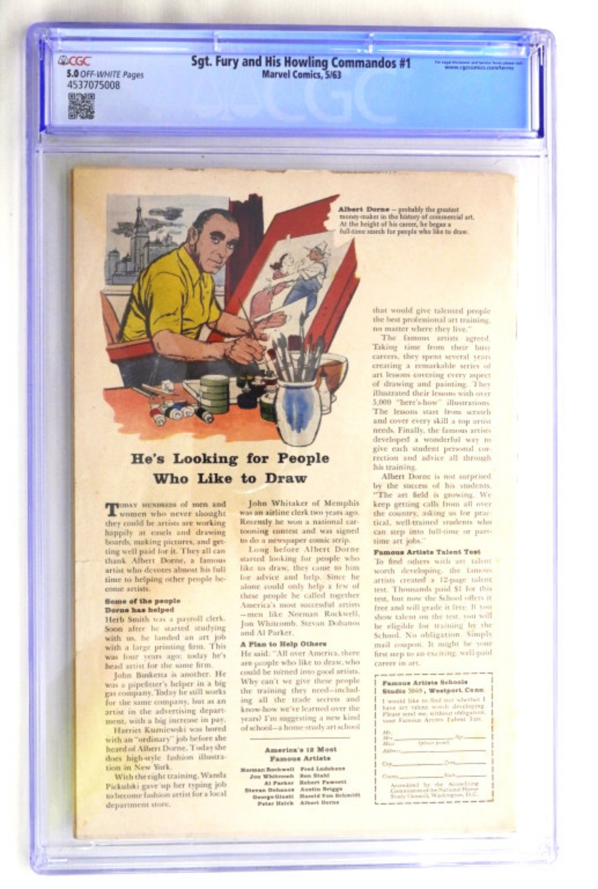 5/63 SGT FURY and HIS HOWLING COMMANDOS #1 – 1st APP of SGT FURY – KEY COLLECTIBLE