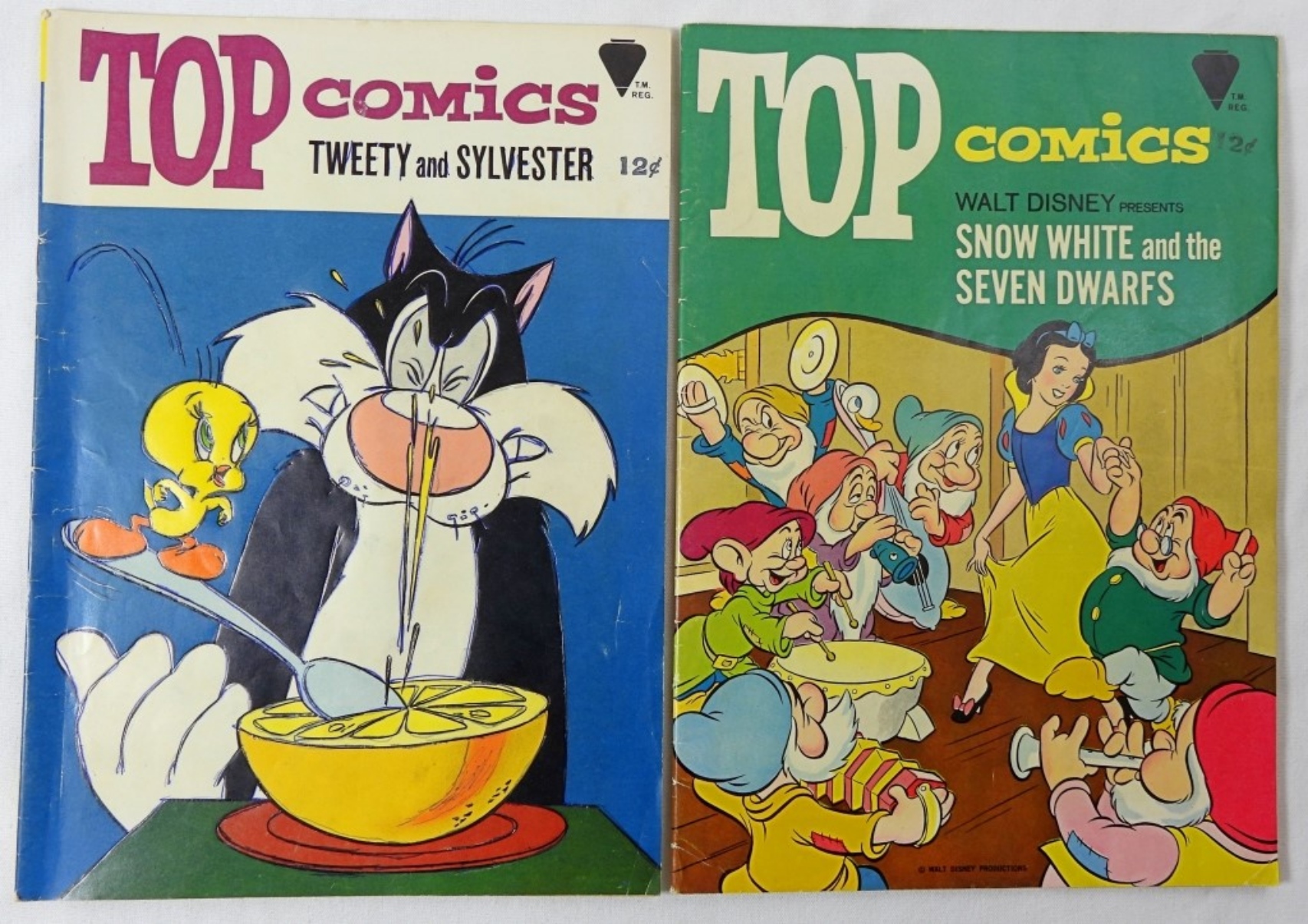 1944 SNOW WHITE vg+, 1956 #1 TWEETY AND SYLVESTER inked on cover outlined, 1967 #2 YOGI BEAR inked cover, 1967 #1 HUCKLEBERRY HOUND inked cover
