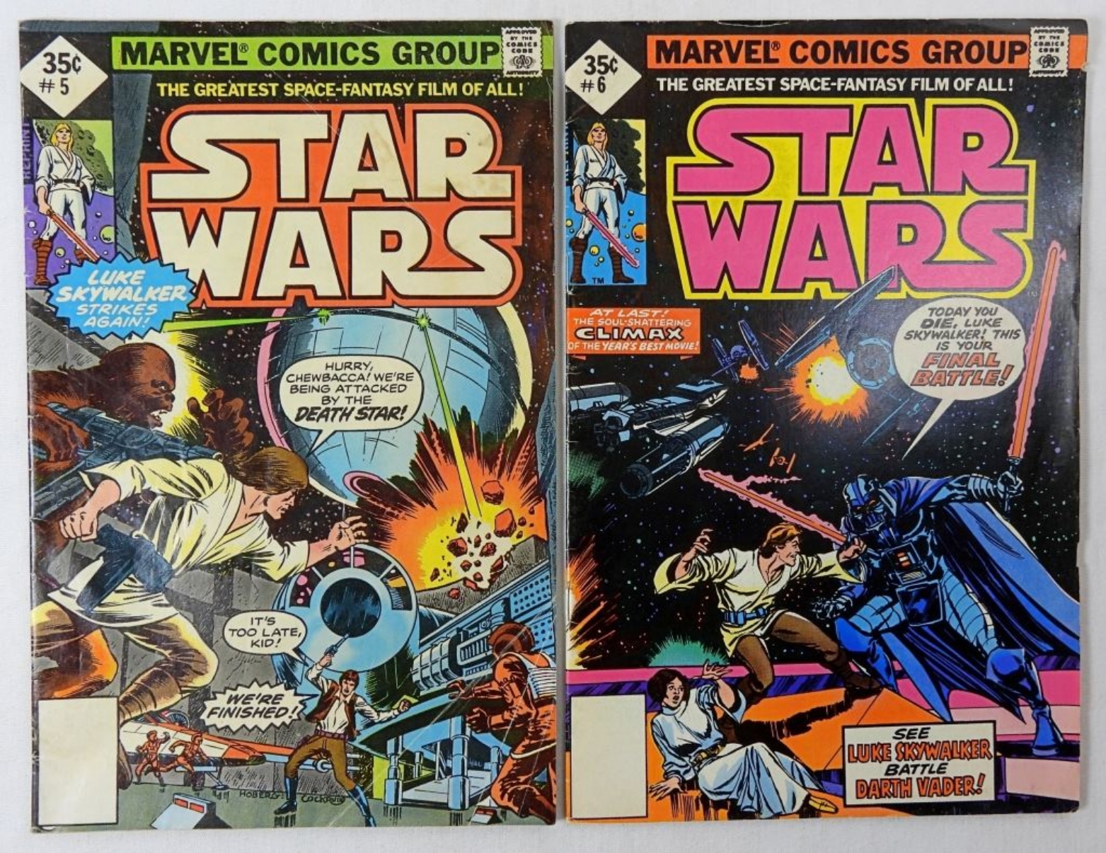 (5) 1977 MARVEL COMICS STAR WARS LOT with KEY ISSUE #1 VG – REST VG/FINE
