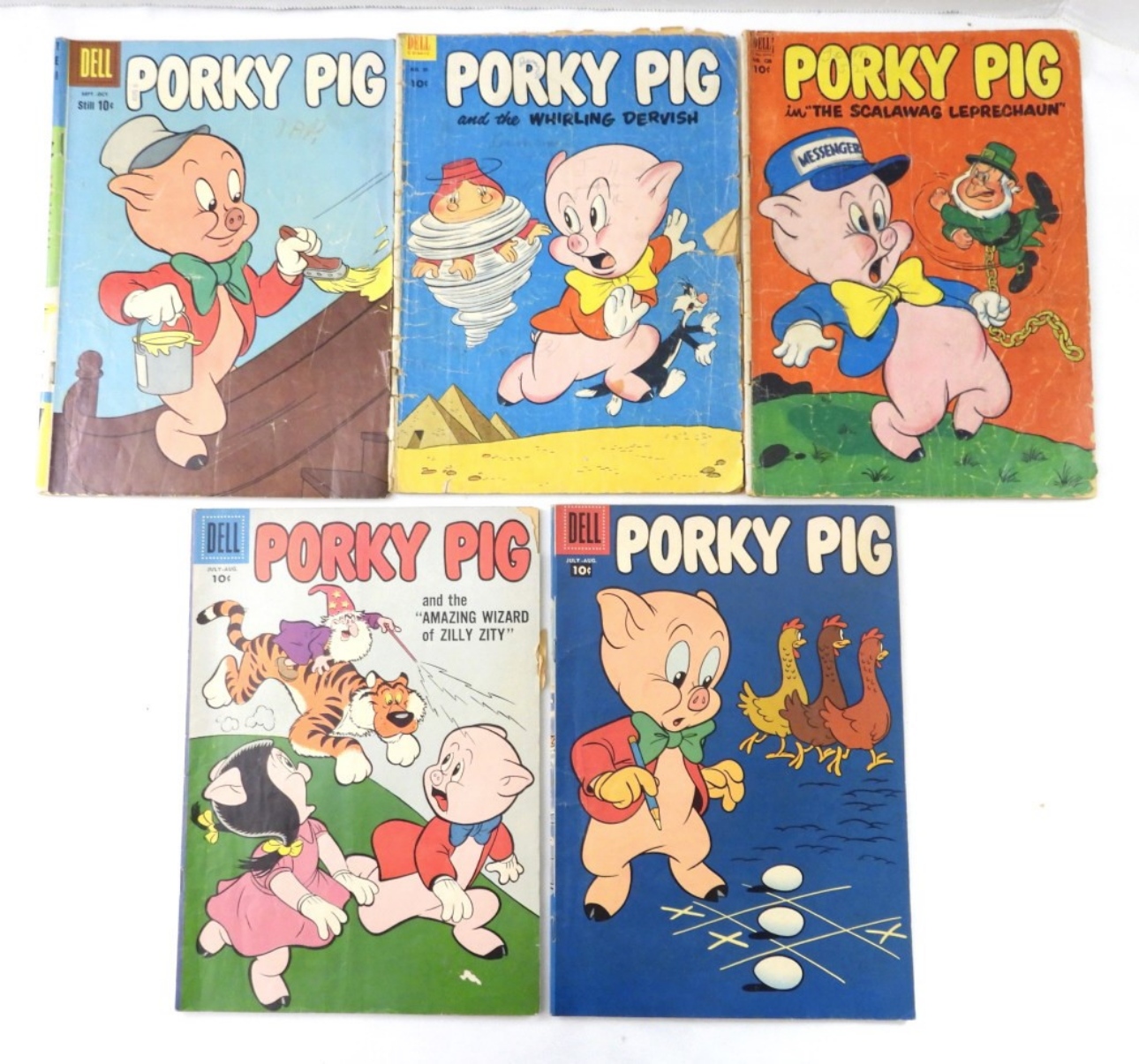 (5)1950S DELL PORKY PIG COMICS, ISSUES 26, 53,59, 66,& 426; ISSUE 26 & 426 WORN/USED, WRITING ON SOME COVERS, 53 & 59 GOOD CONDITION
