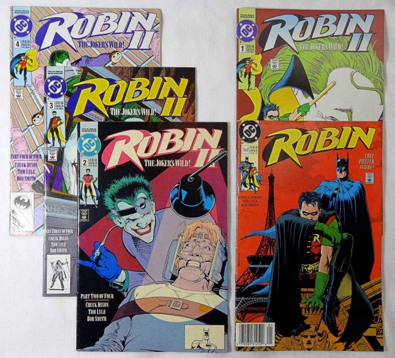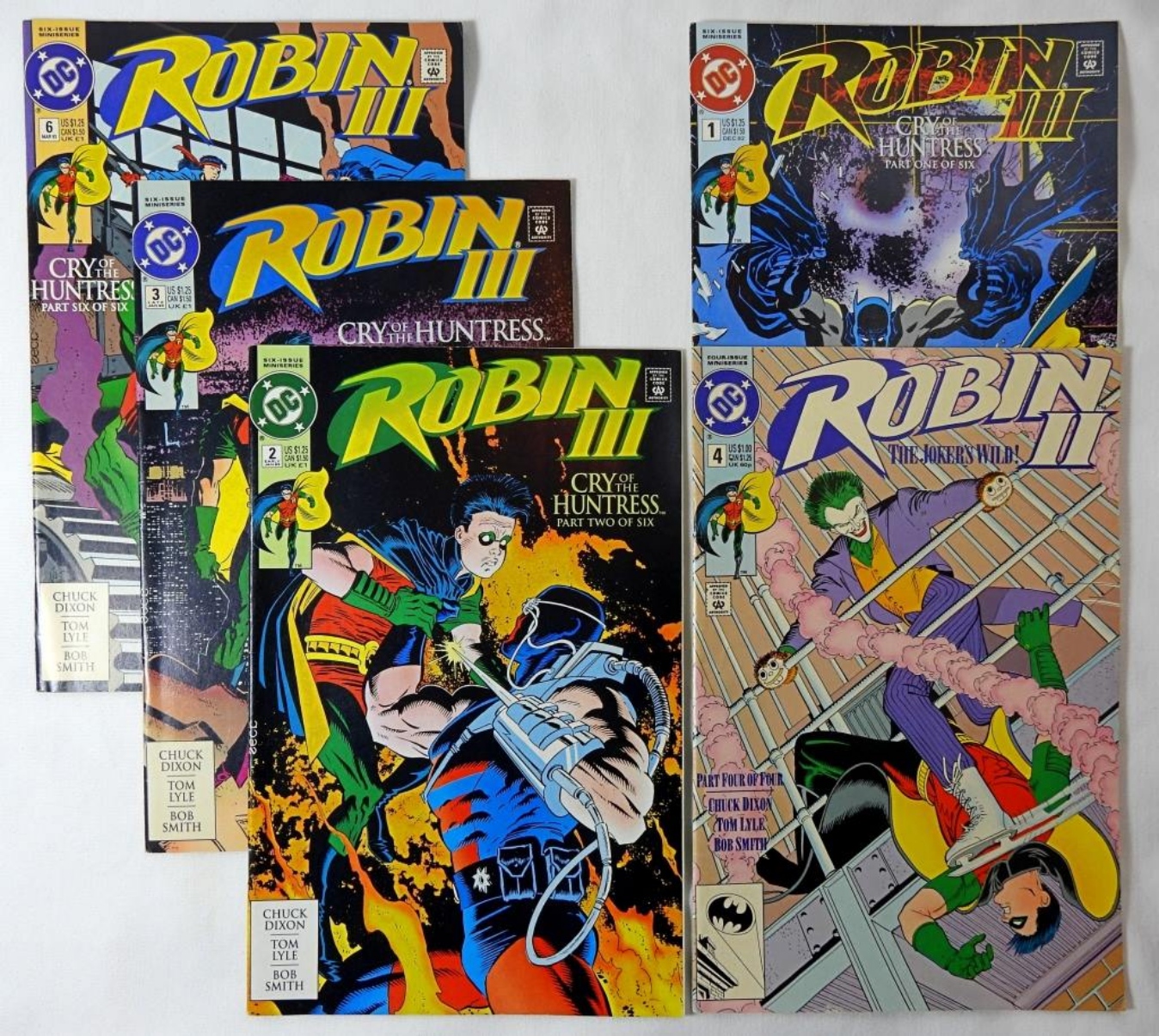 10 DC COMICS-1990-1992- GREAT FOR ANY ROBIN COLLECTOR- ROBIN- 1 OF- 1990 (IN GOOD CONDITION DOES SHOW SOME WEAR). ROBIN II THE JOKERS WILD-1991-#1, 2,3,4(THERE IS TWO #4). ROBIN III CRY OF THE HUNTRESS-1992-#1,2.3,6.