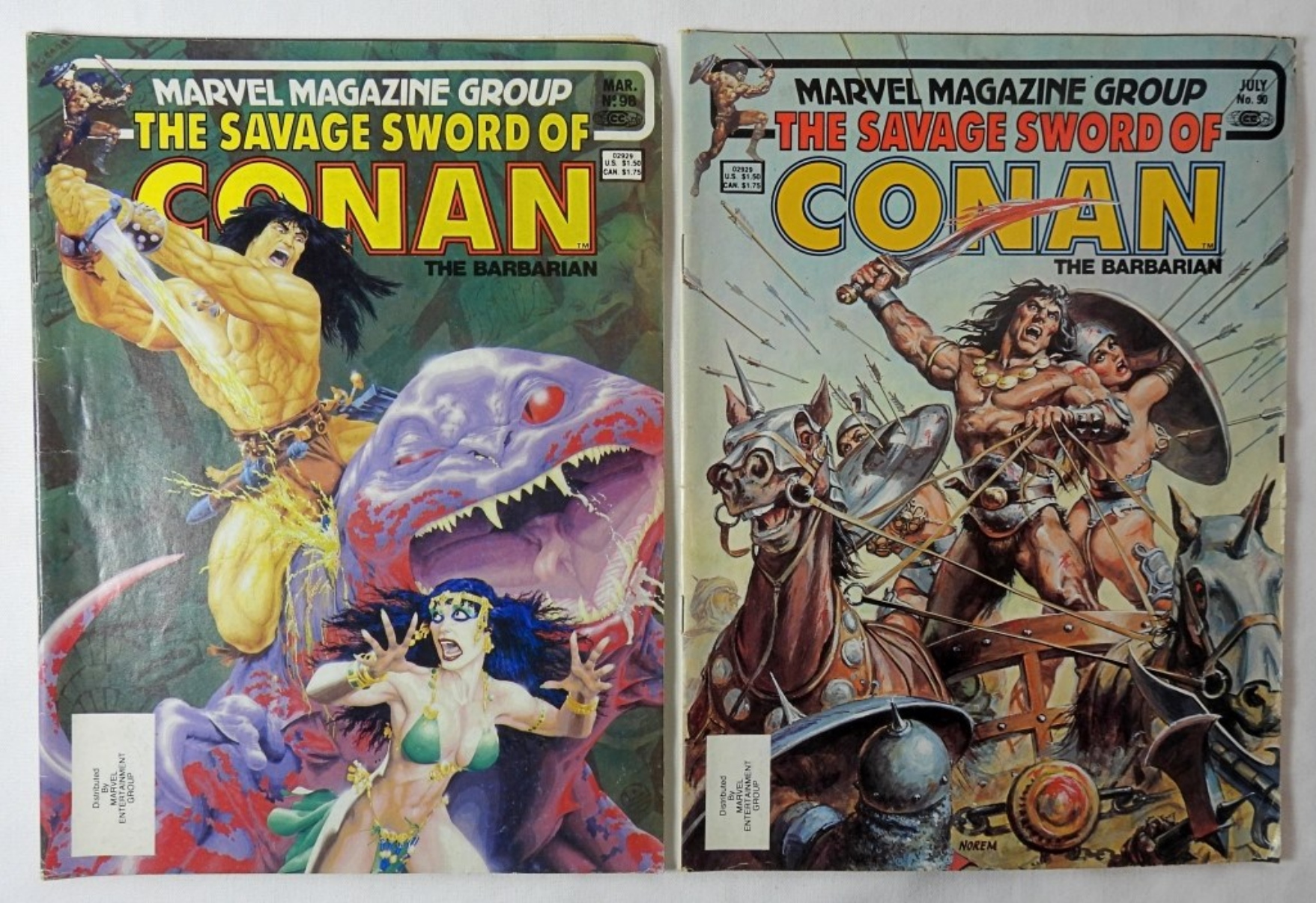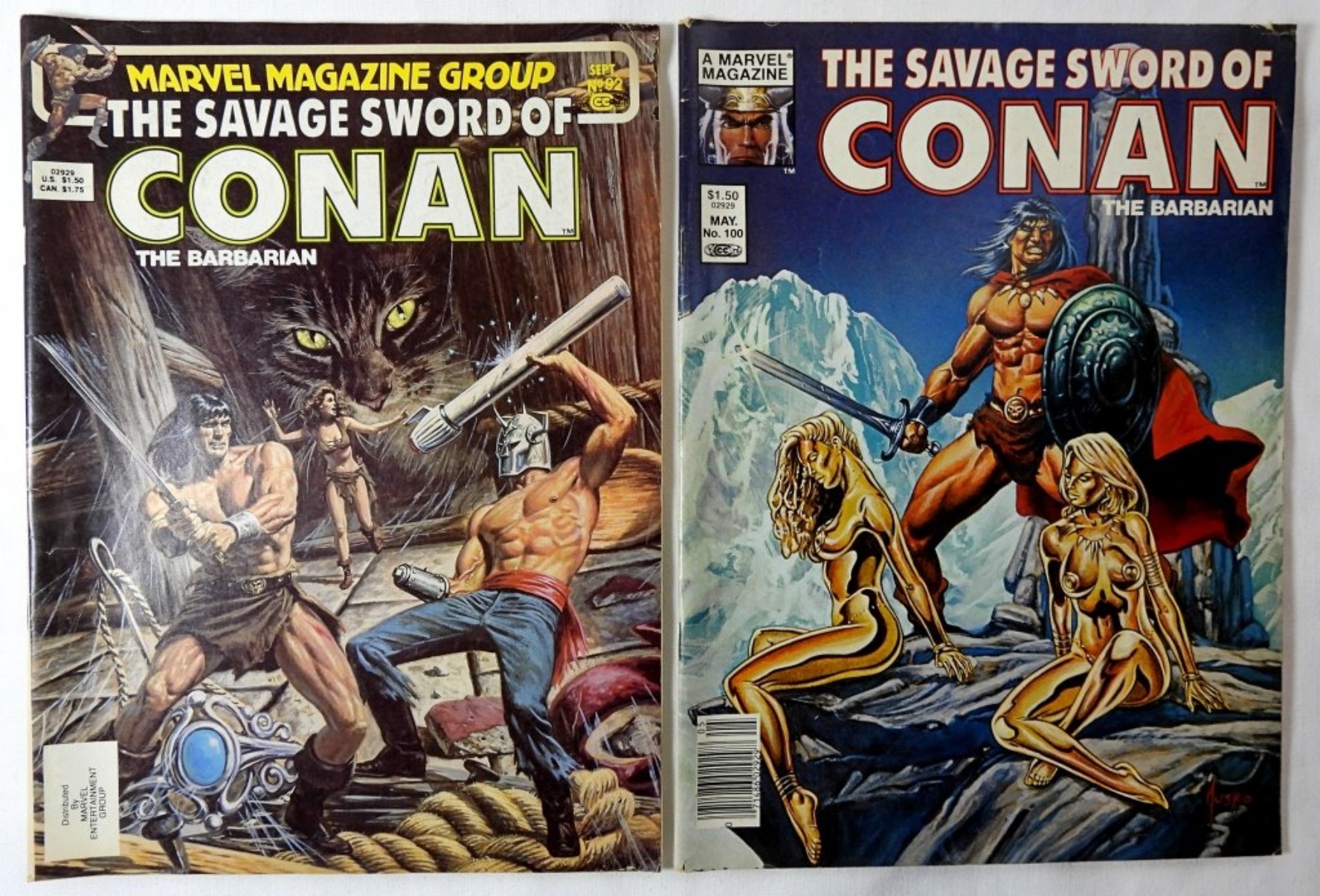 4-1983-1984- MARVEL MAGAZINE- THE SAVAGE SWORD OF CONAN THE BARBARIAN- NO 92,90, 100, 98. ALL OF THESE COMICS ARE IN GOOD CONDITION. THEY DO SHOW SOME WEAR, PREOWNED.