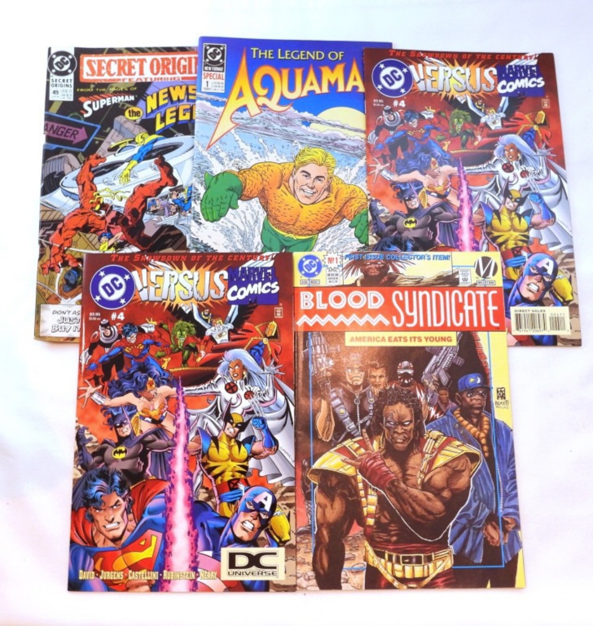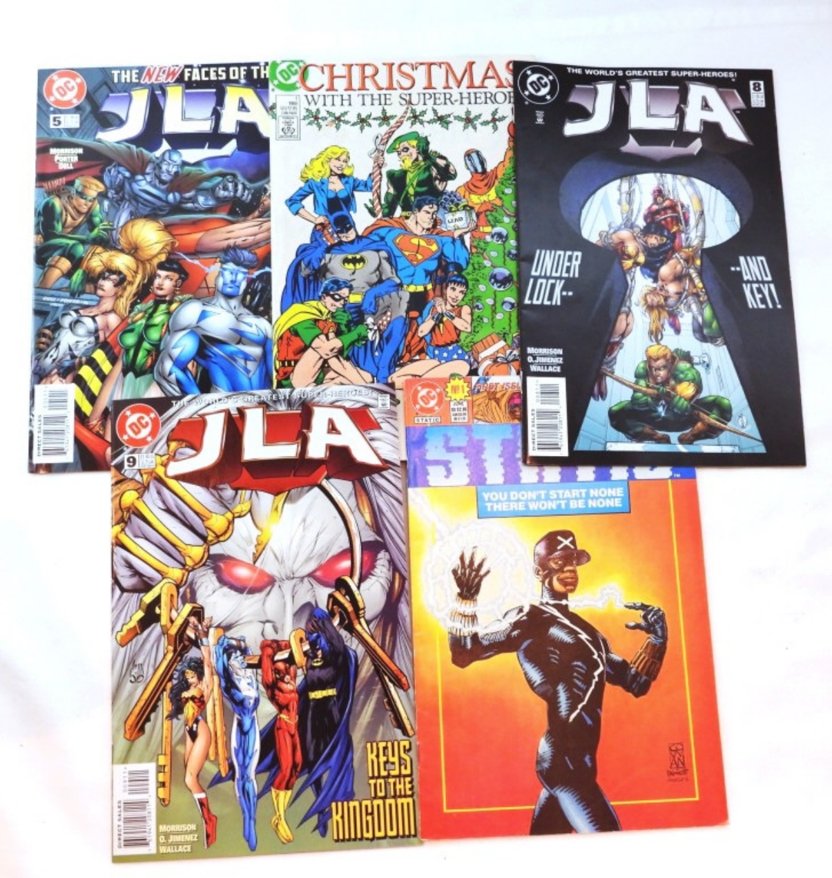 10- DC ASSORTED COMICS- 1989-1997- BLOOD SYNDICATED- 1993- NO. 1. 2- DC VERSUS MARVEL COMICS- 1996- NO. 4. STATIC- 1993- NO. 1. JLA- 1997- NO. 9. JLA- 1997- NO. 8. CHRISTMAS WITH THE SUPER-HEREOS- 1988- NO. 1. THE