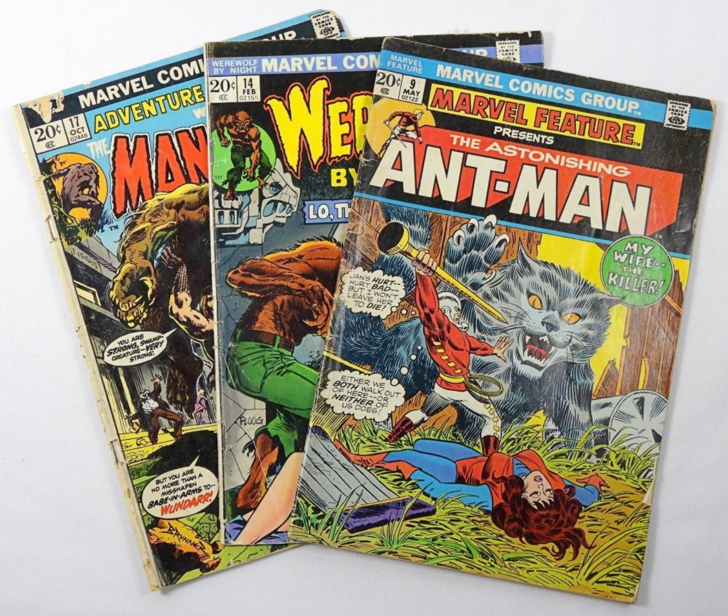 ANT-MAN #9 vg, WEREWOLF #14 good, MAN-THING #17 fair