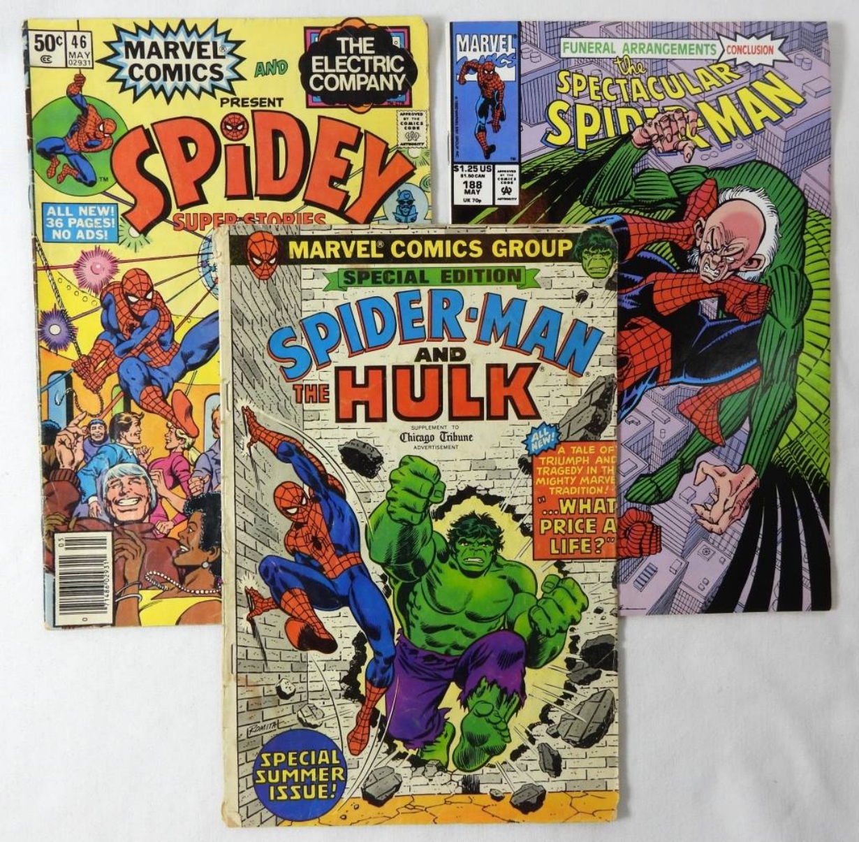6 MIXED MARVEL COMICS: SPIDERMAN (SOME COMICS INCLUDE MARVEL TEAM UP, SPIDEY SUPER STORIES, SPIDER-MAN AND THE HULK, AND MORE!)