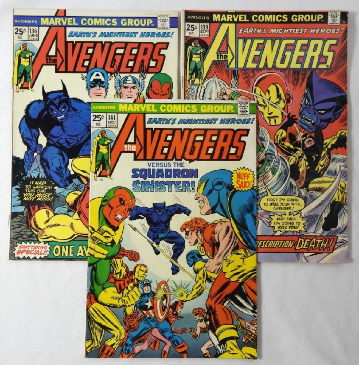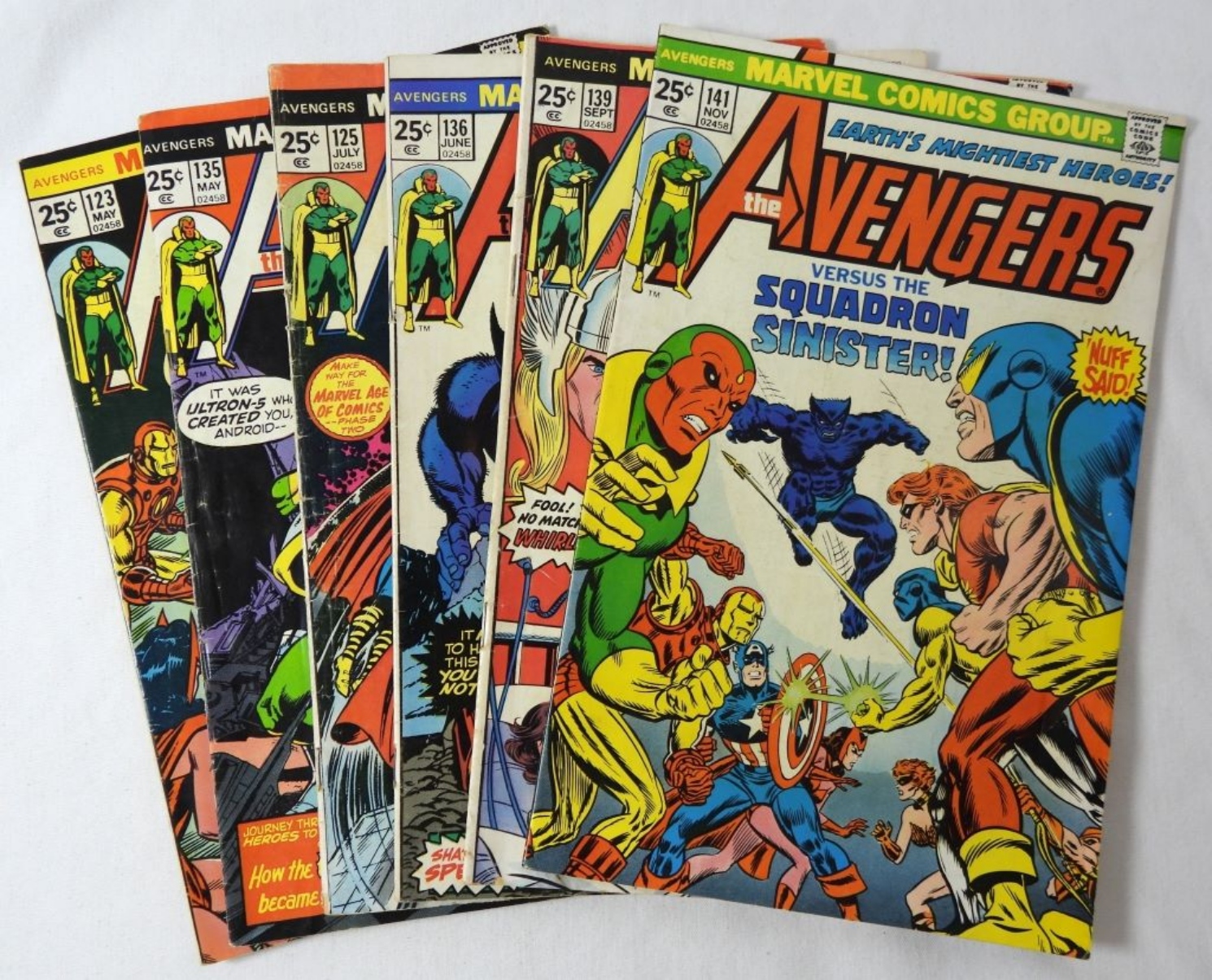 6 MARVEL THE AVENGERS COMICS IN GOOD CONDITION. THE AVENGERS 1974 #123/125, 1975 #135/136/139/141.