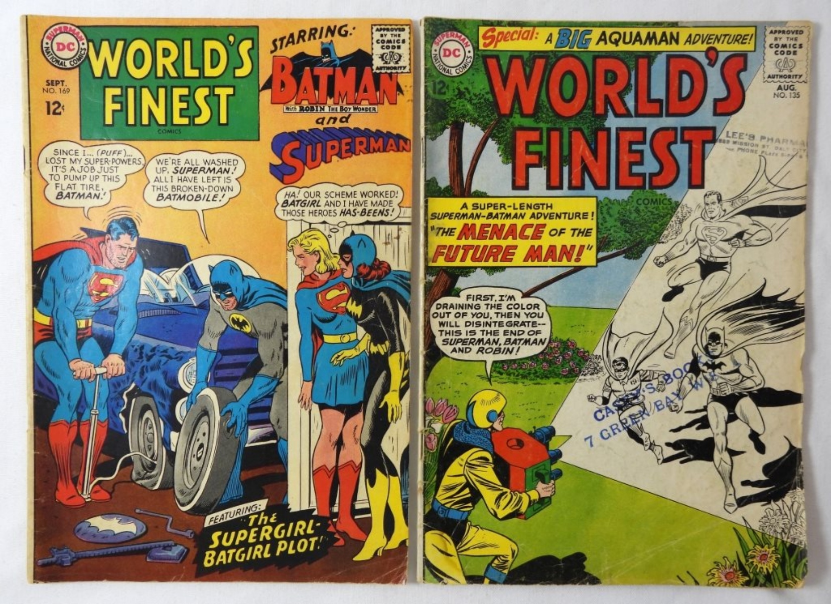 4 ASSORTED DC WORLD’S FINEST COMICS: #135, 143, 166, 169. MIXED CONDITIONS. 1963-1967