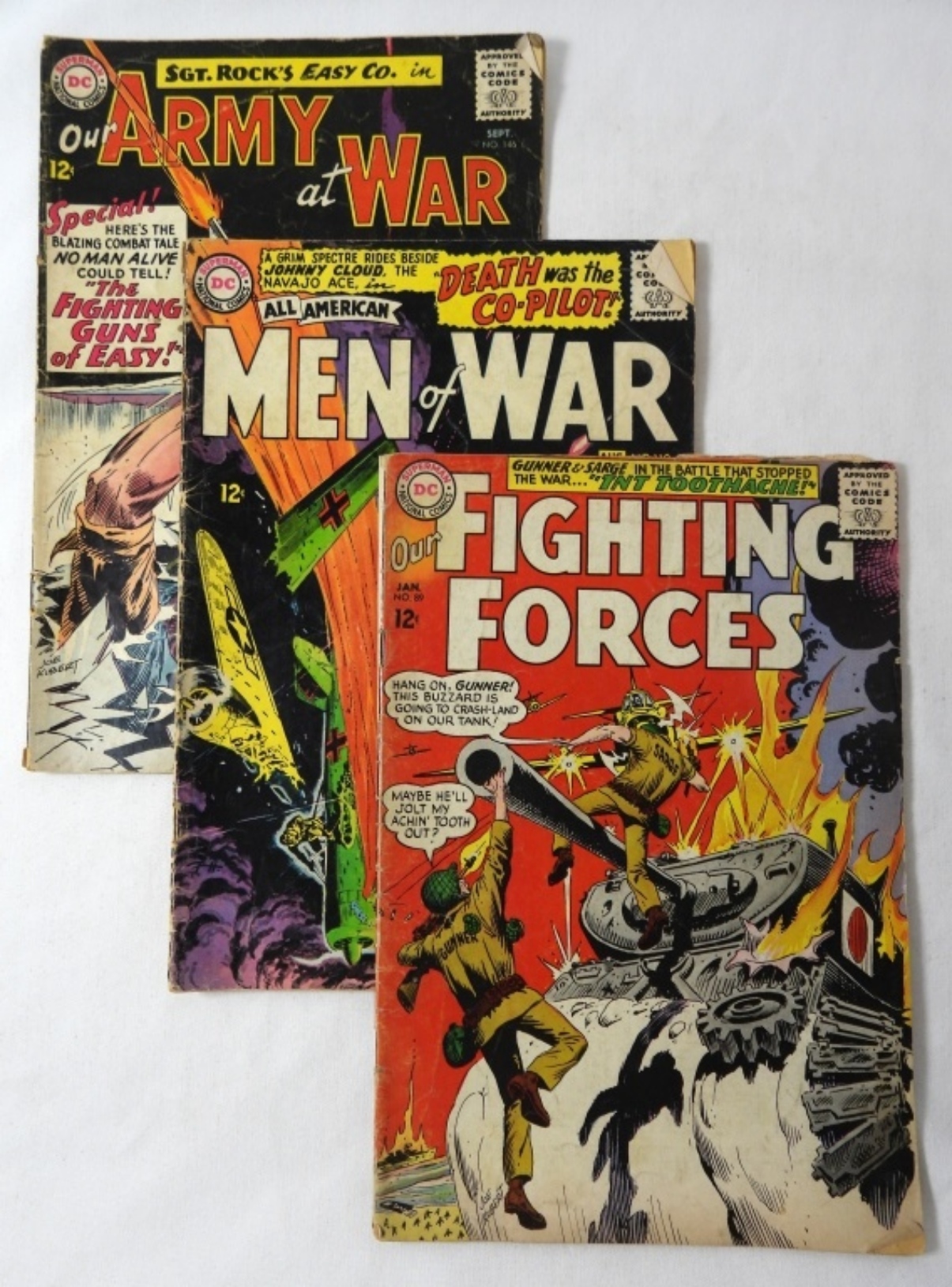 6 ASSORTED WAR COMIC LOT. COMICS IN MIXED CONDITION. INCLUDES FIGHTING FORCES #89, MEN OF WAR #110, ARMY AT WAR #146, WAR STORIES #130/132, AND SGT ROCK #183.