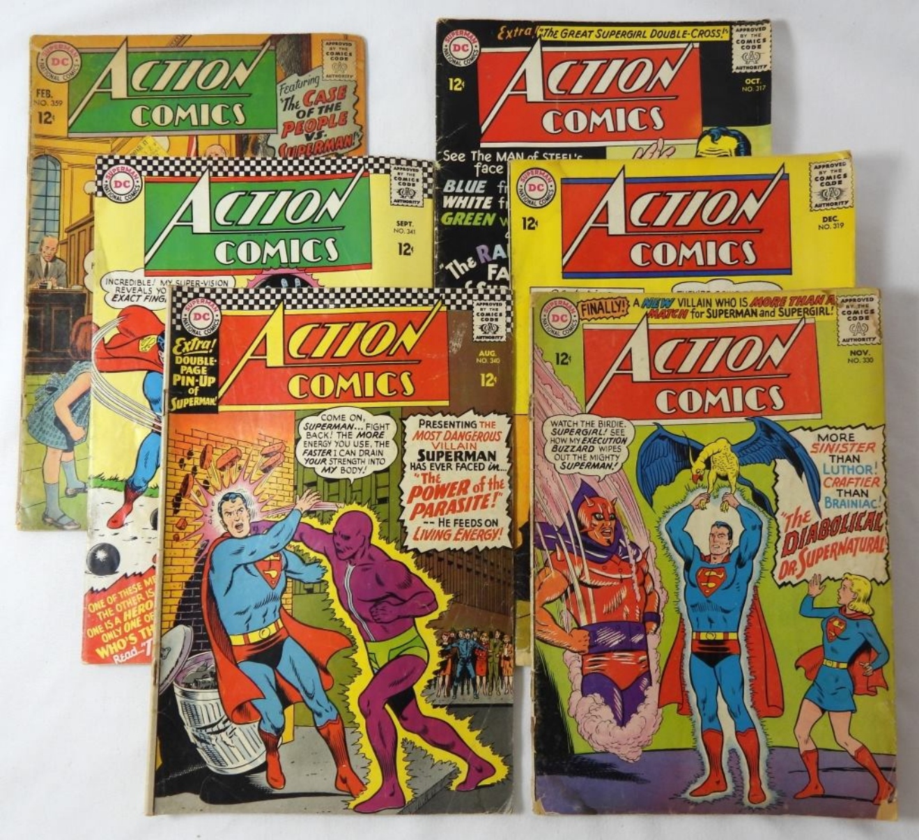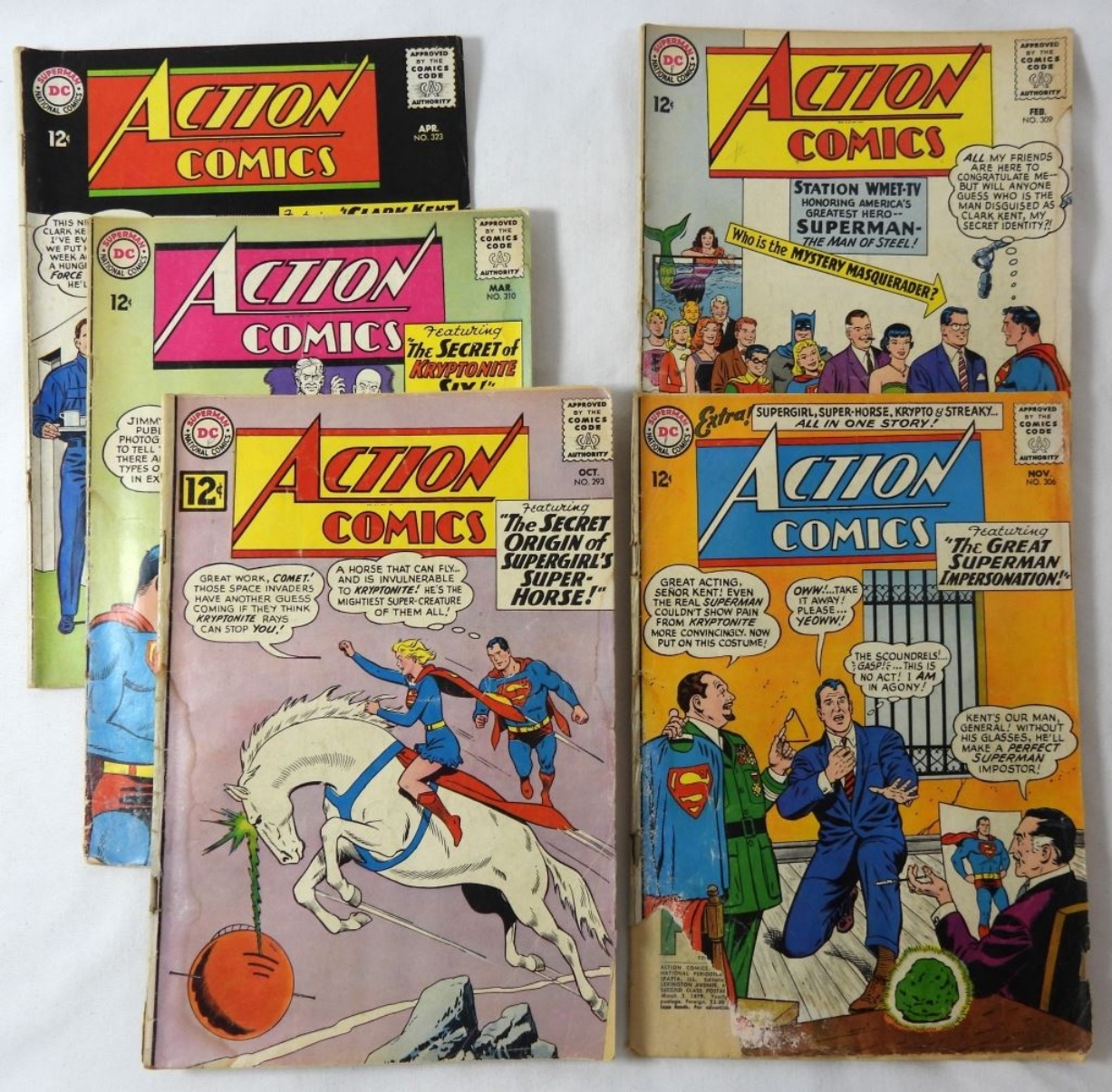 11 ASSORTED DC ACTION COMICS LOT 1962-1968 SILVER AGE. COMICS IN MIXED CONDITION. INCLUDES #293, 306, 309, 310, 317, 319, 323, 330, 340, 341, 359