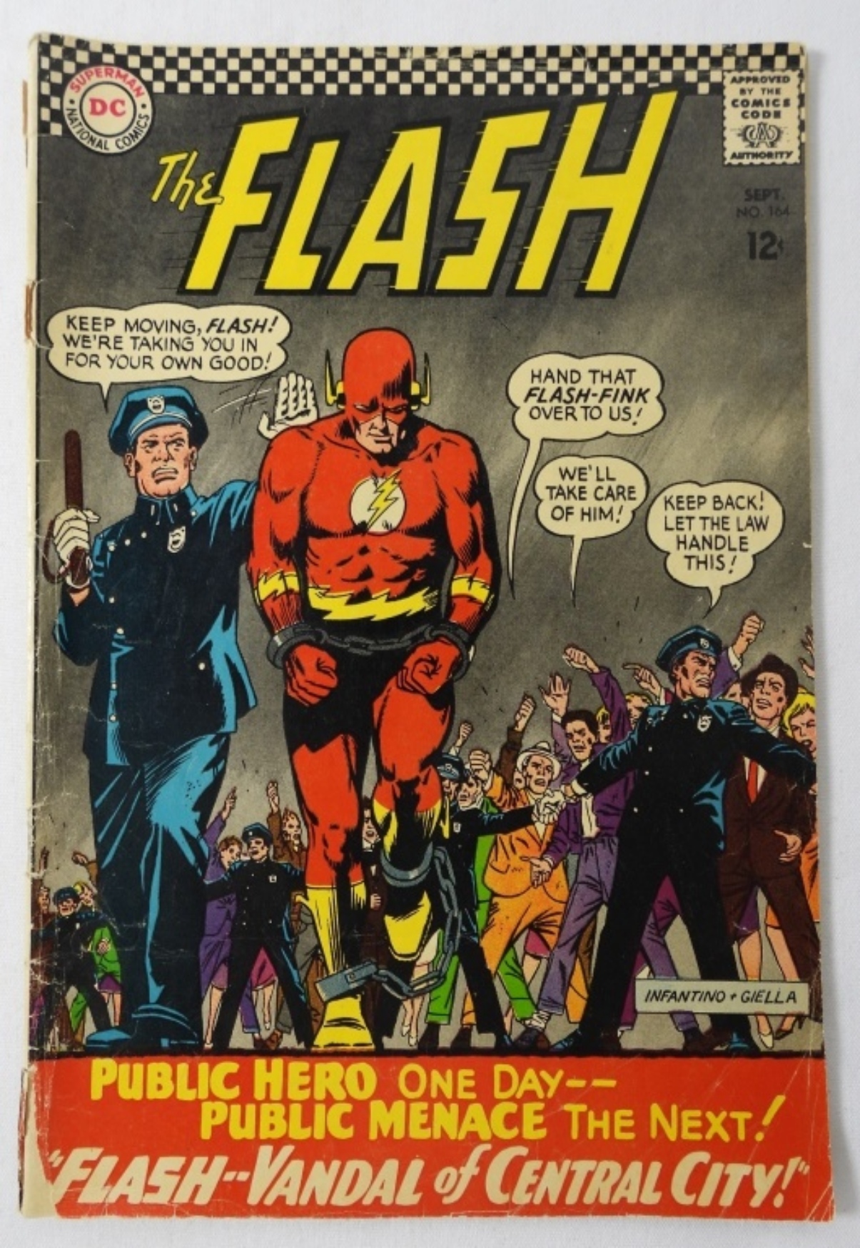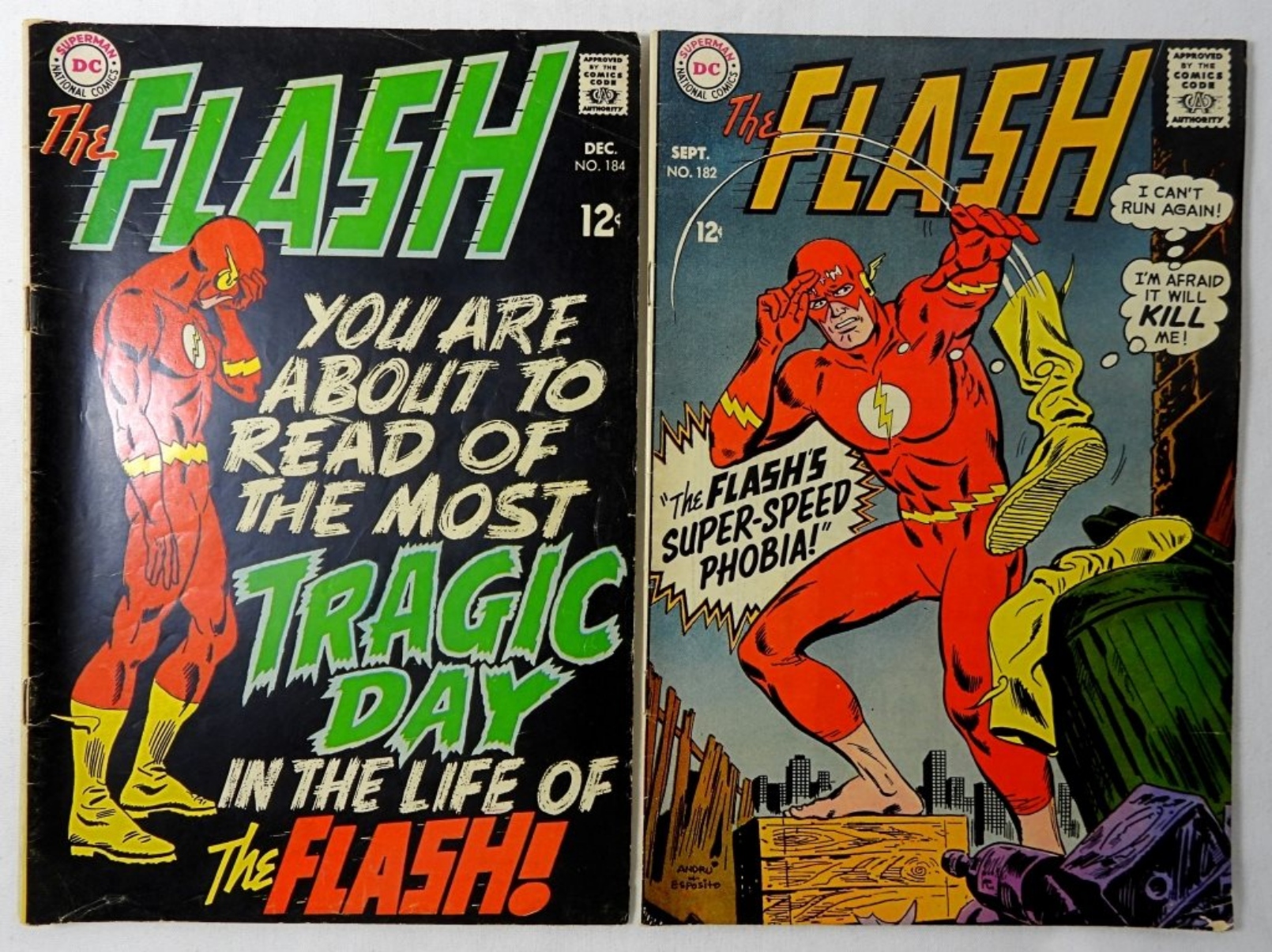 1966-1968 SILVER AGE DC THE FLASH COMICS: #164/182/184. COMICS IN MIXED CONDITION