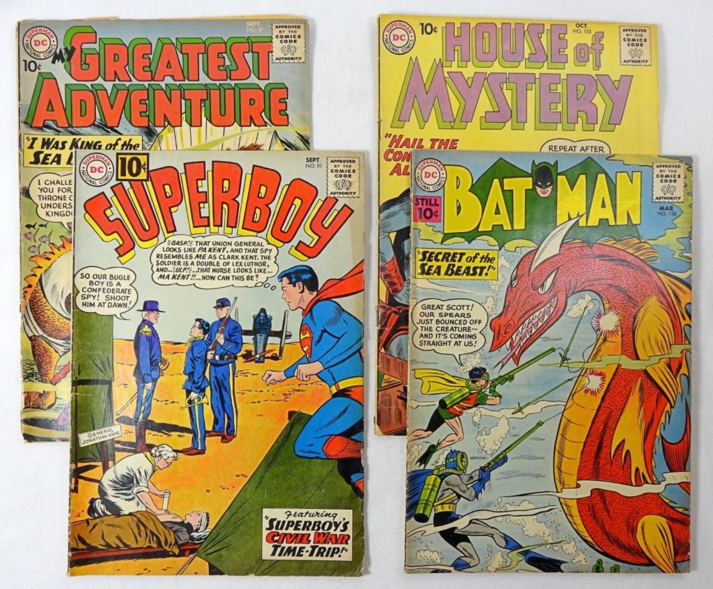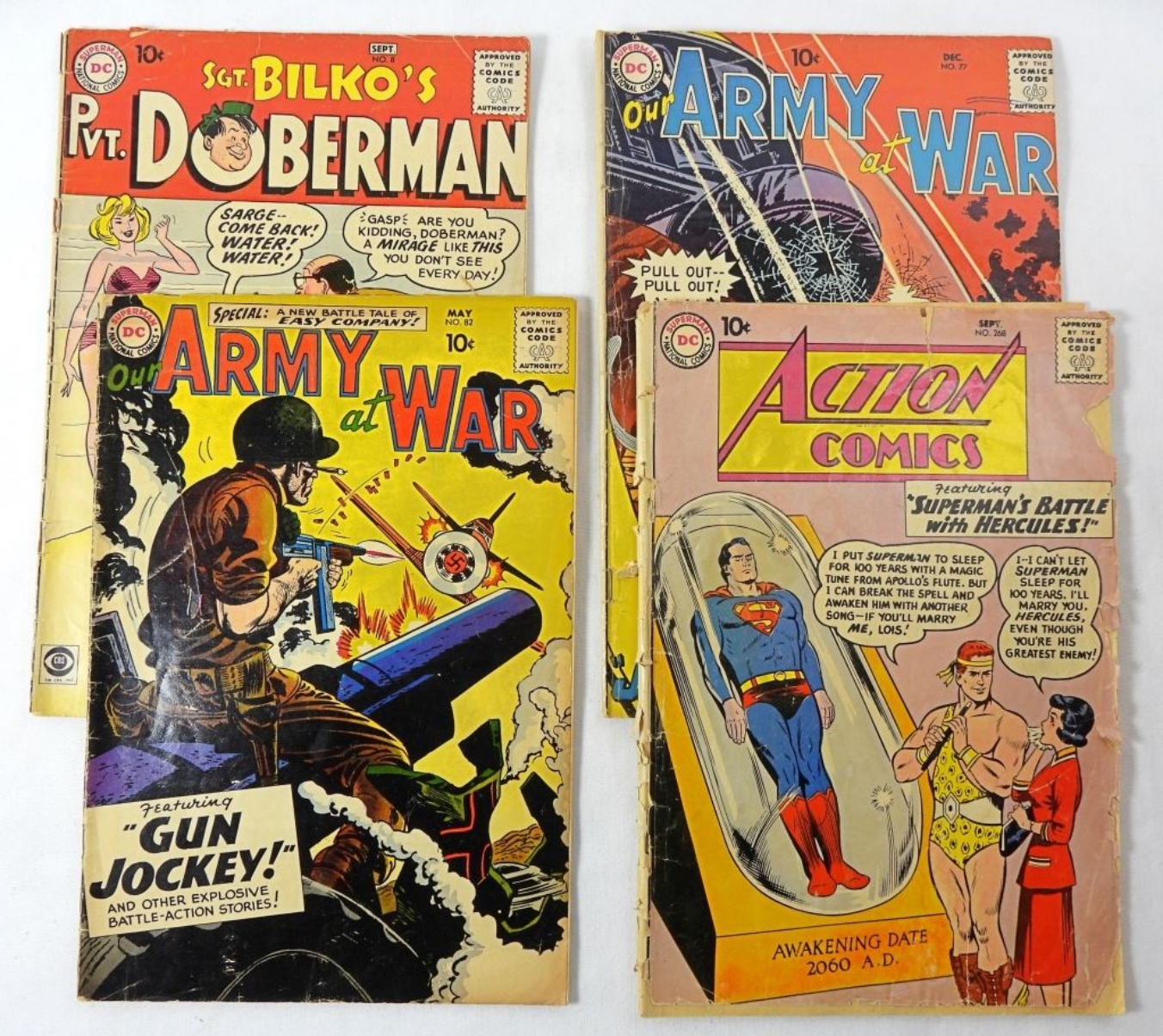 10 ASSORTED SILVER AGE DC 10 CENT COMICS, ALL IN MIXED CONDITIONS. SOME COMICS INCLUDE: BATMAN, ARMY AT WAR, RUDOLPH AND MORE!