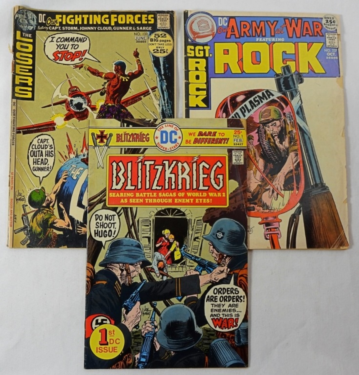 5 ASSORTED DC WAR THEME COMIC LOT IN GOOD CONDITION. INCLUDES: GI COMBAT #155, SGT ROCK #277, THE LOSERS #137, BLITZBRIEG #1, AND ARMY AT WAR #237