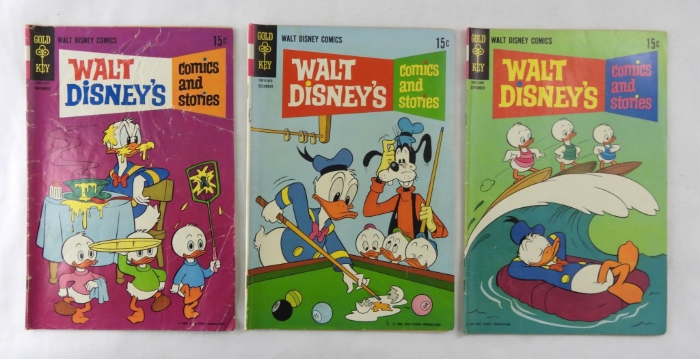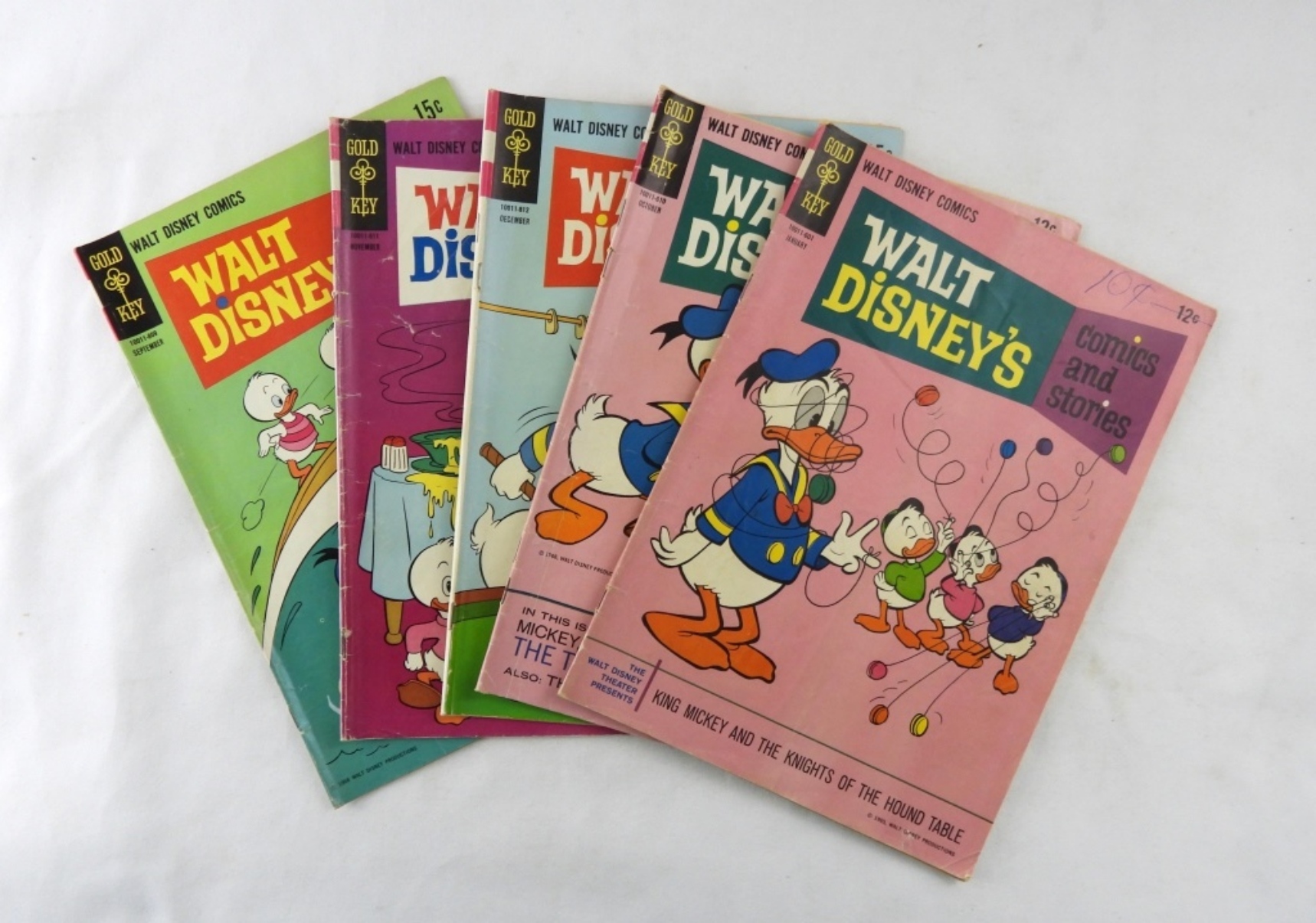 5 SILVER AGE GOLD KEY WALT DISNEY’S COMICS AND STORIES 1966-1968. 1966 # 4, 1, 1968 #3, 2, 12. MIXED CONDITIONS