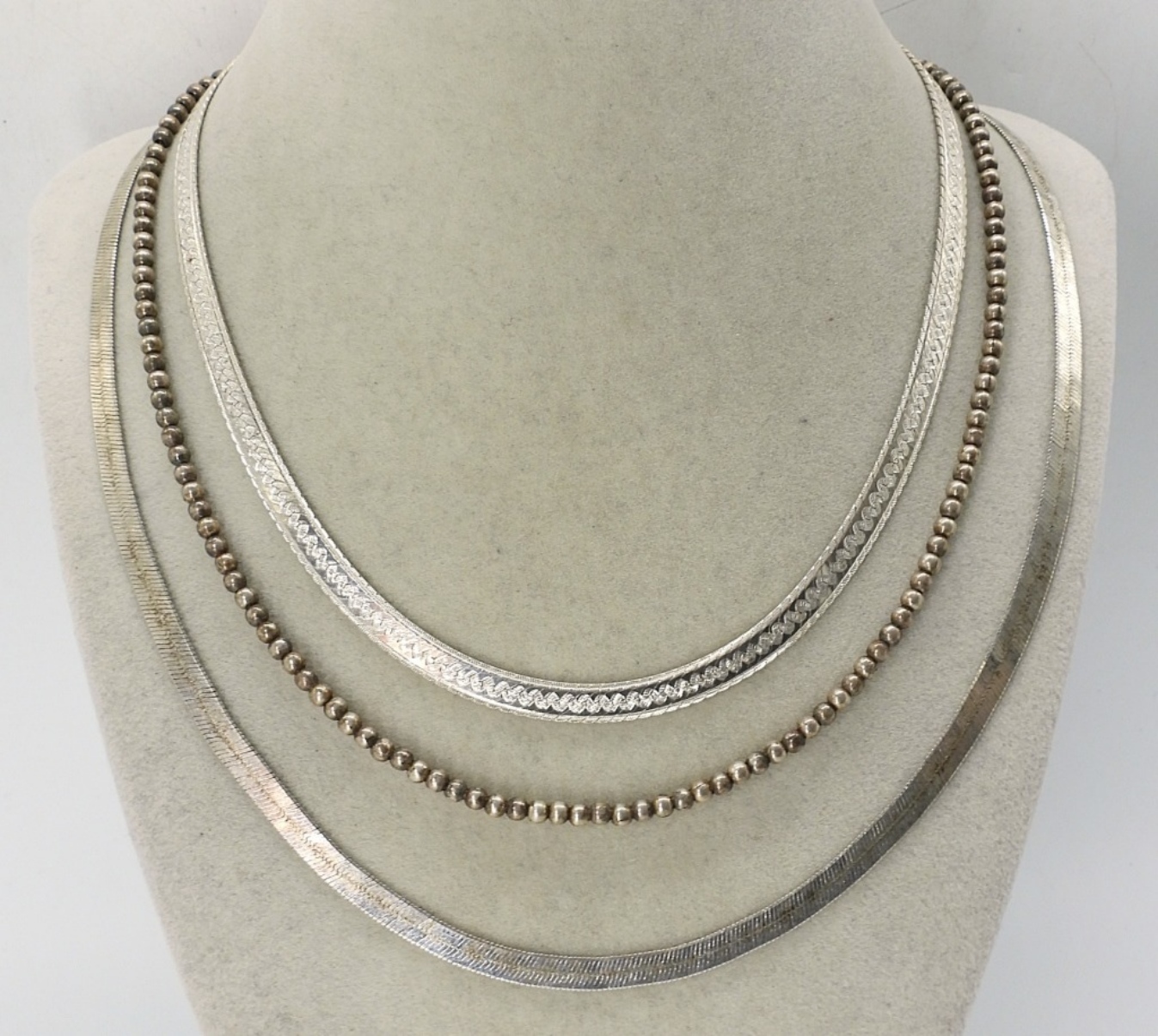 THREE STERLING SILVER CHAINS, 16-20″. (23.9 DWT)