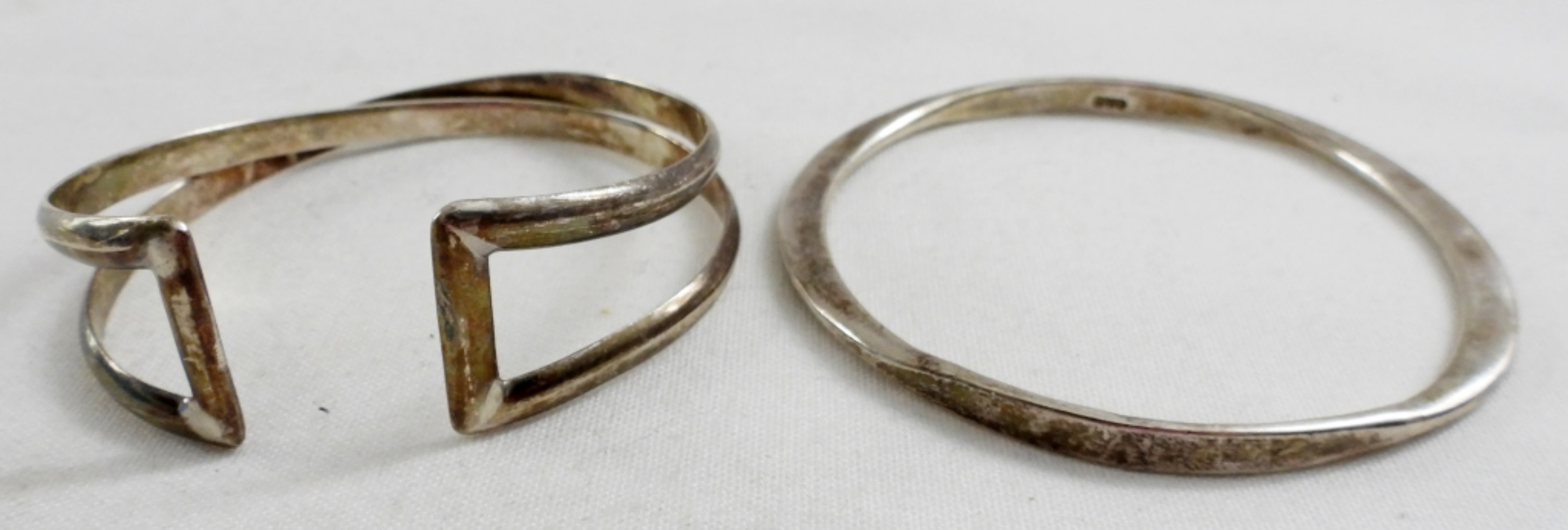 26DWT, CUFF BRACELET IS 6 1/2IN AROUND WITH GAP, STAMPED THAILAND 925, 1- MEXICO BANGLE STAMPED MEXICO 925 3IN WIDE