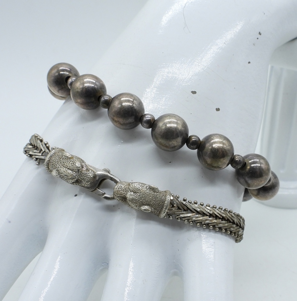 TWO 8.5″ STERLING SILVER BRACELETS. (22.1 DWT)