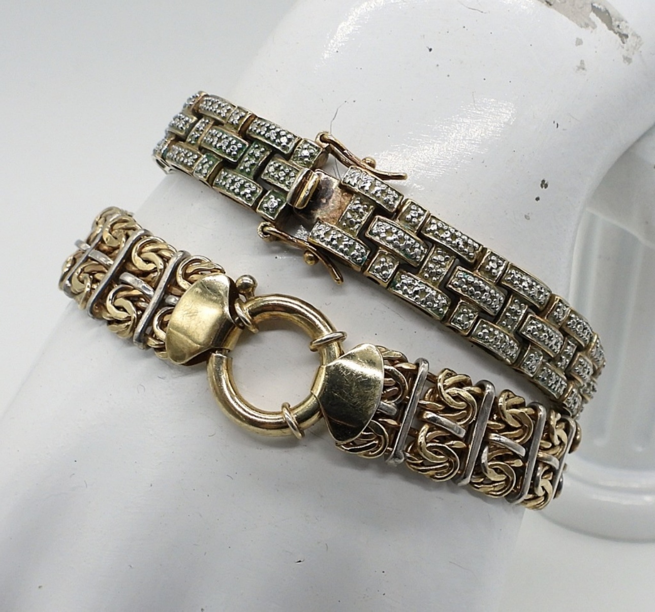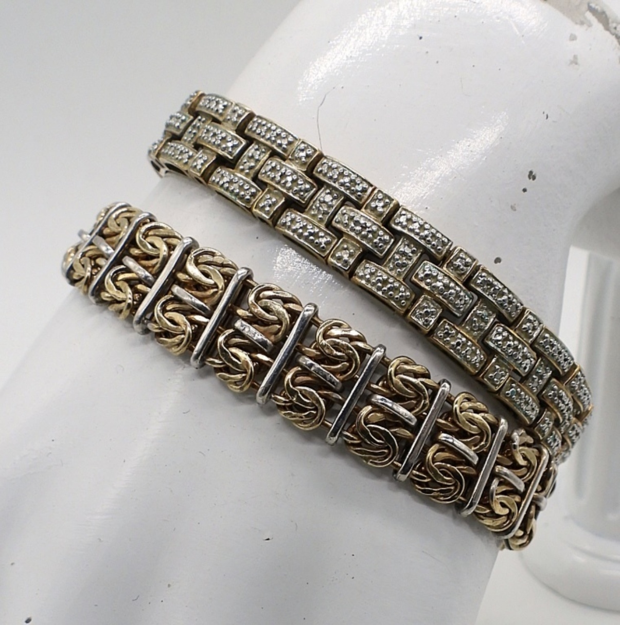 TWO PRETTY GOLD TONE STERLING SILVER, BOTH 7″. (21.4 DWT)