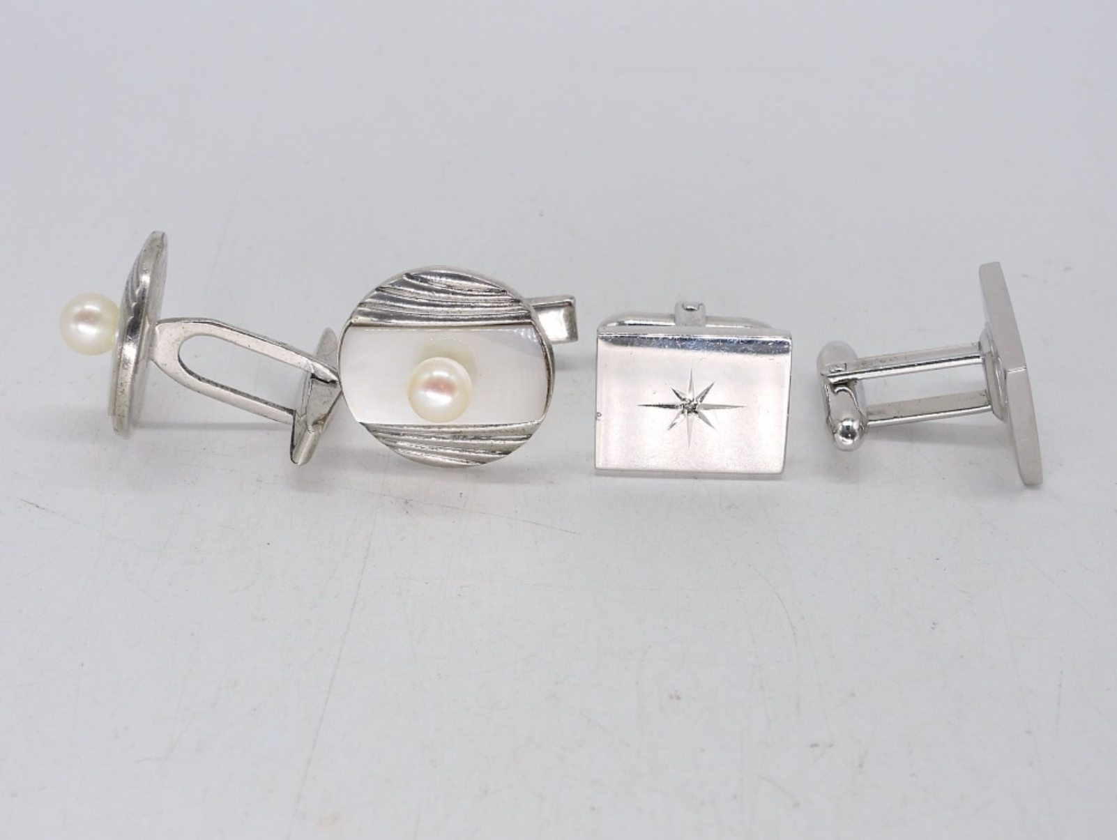 TWO PAIR OF STERLING CUFFLINKS. MOTHER OF PEARL IN LAY. 20 DWT