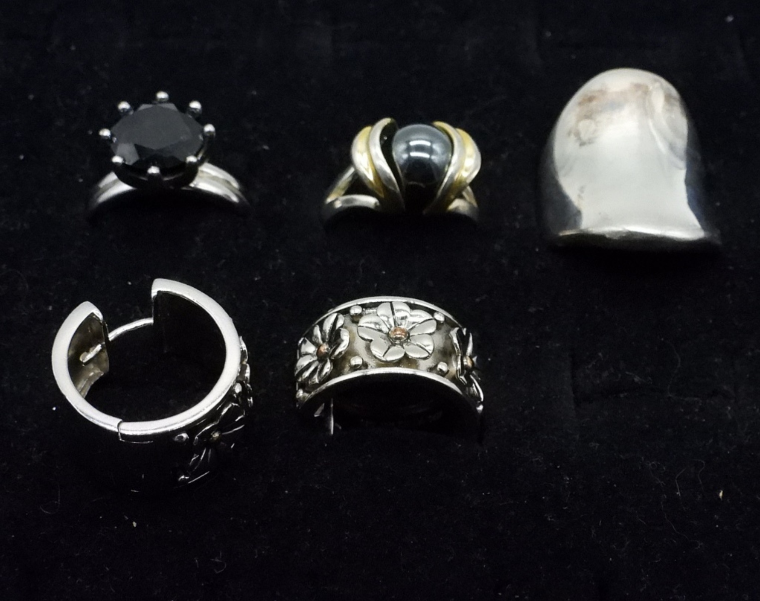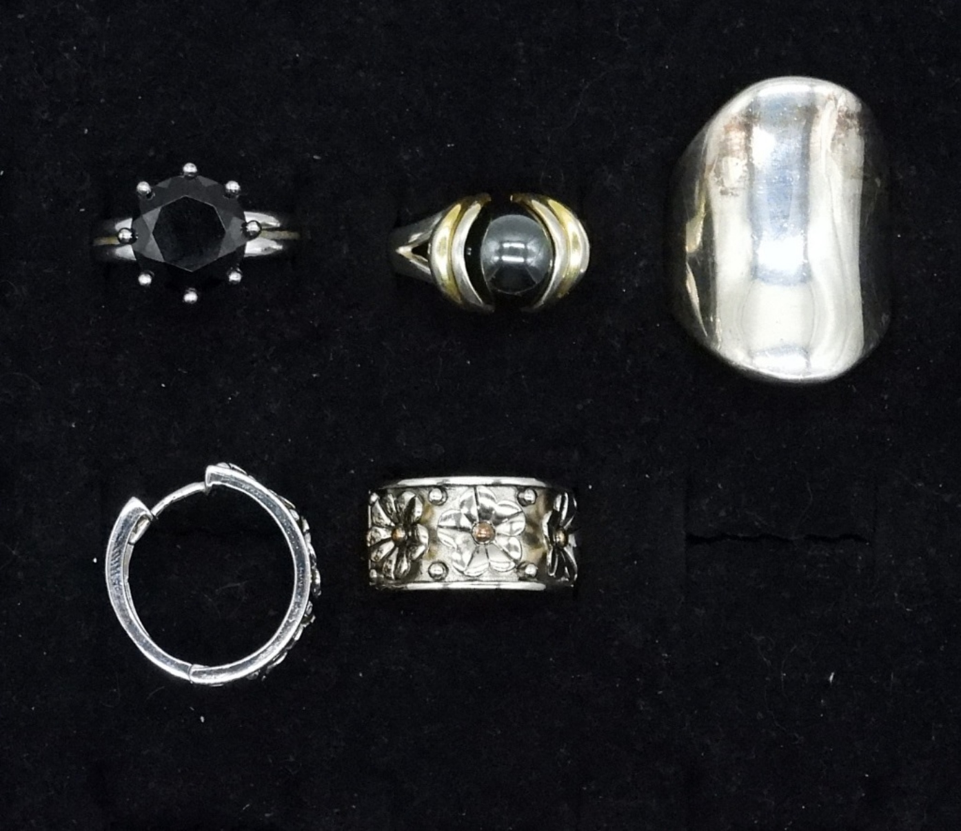 3 STERLING RINGS & 1 PAIR EARRINGS
